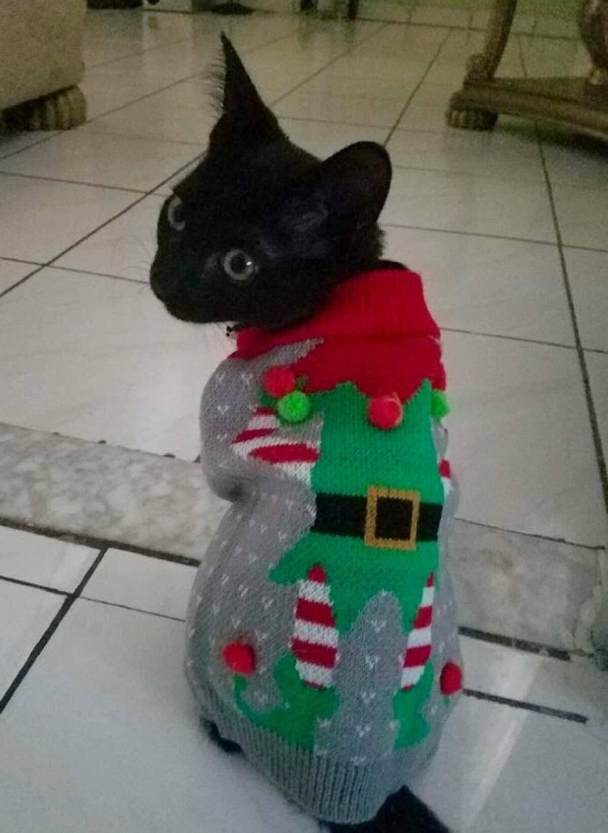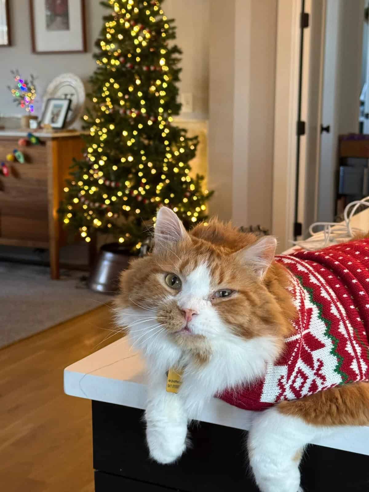 If you’re lucky enough to have a cat that’s relatively unbothered by the season, consider yourself blessed. Maybe they’ll even let you put that ugly Christmas sweater on them after all.