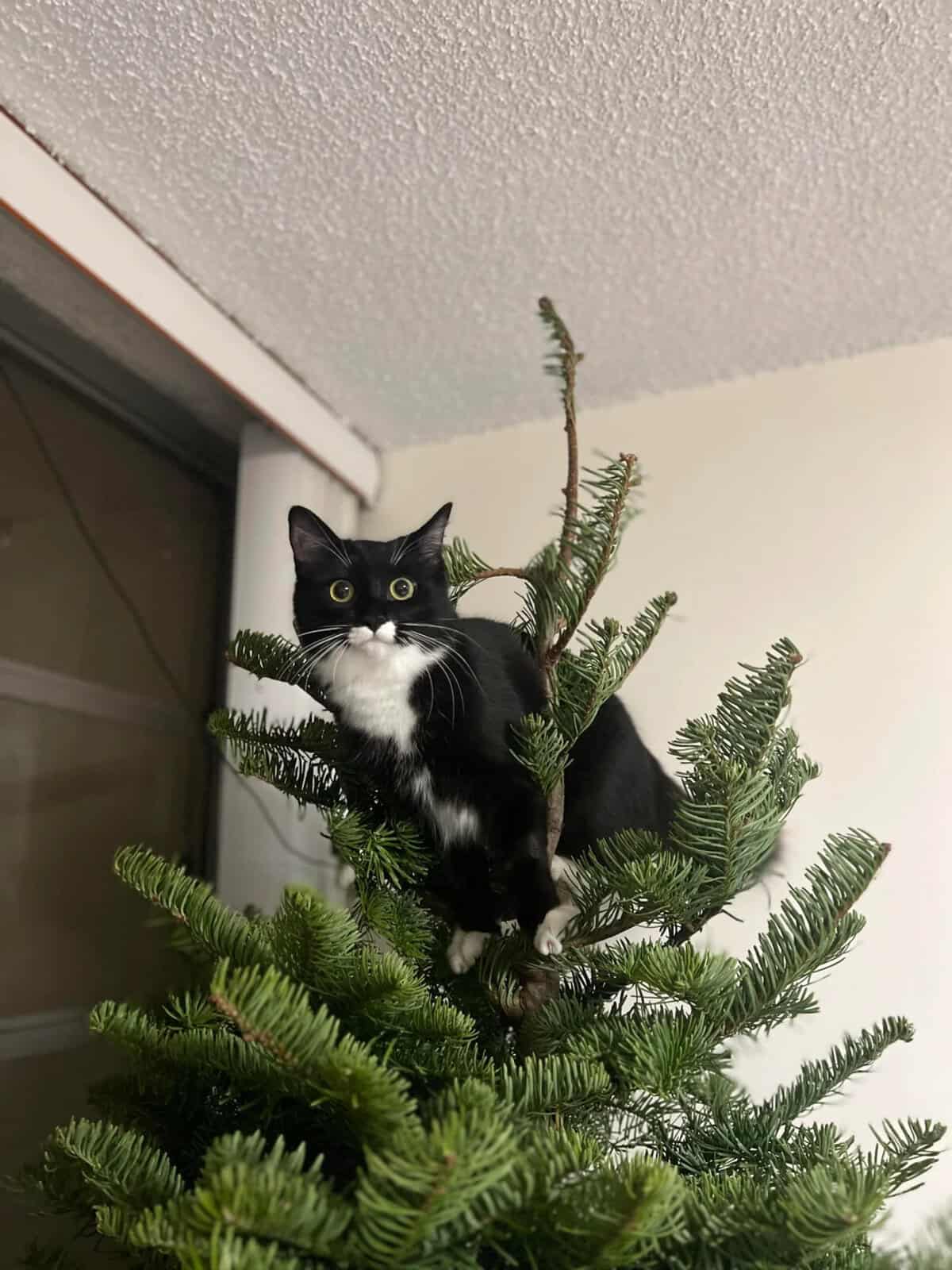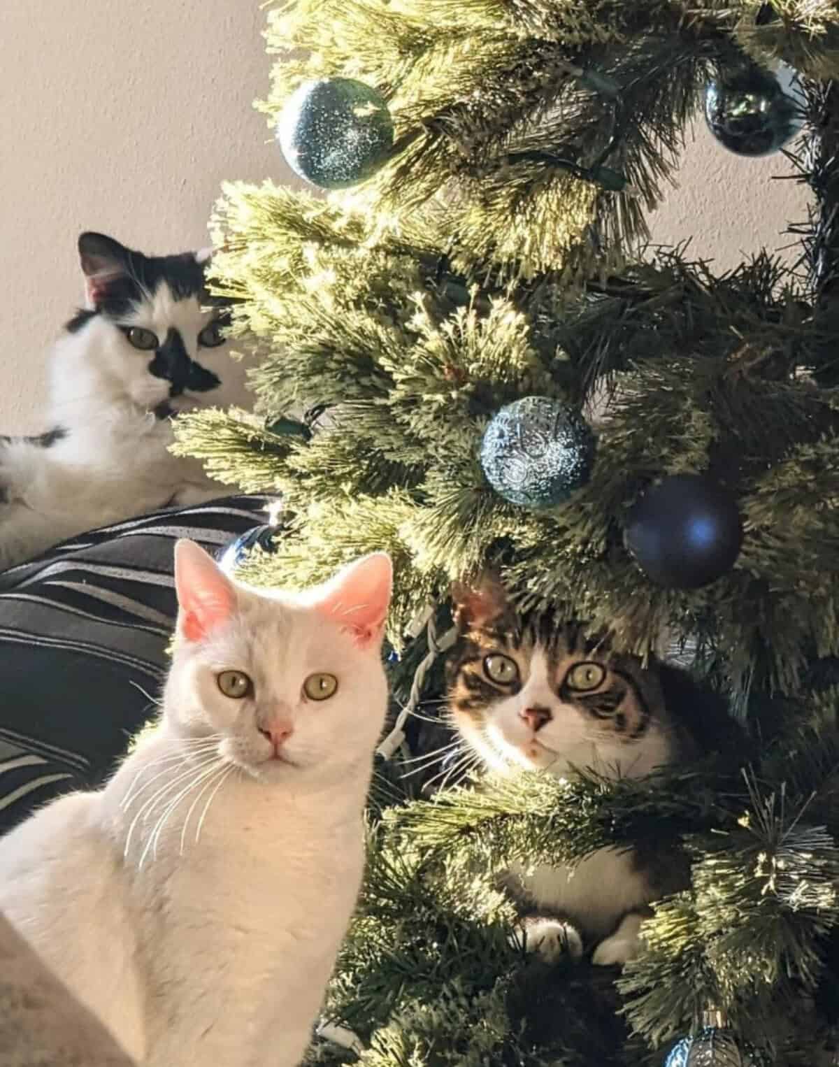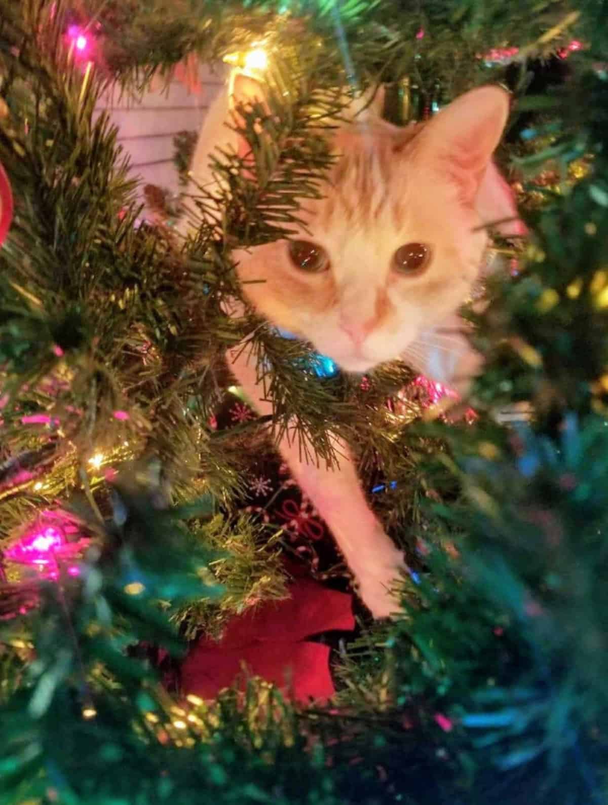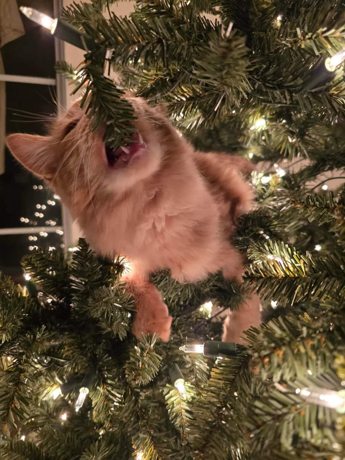 There’s no question our pets become family, but I can’t help wondering what they think of the holiday season. Christmas has to be especially confusing for cats. One day, there’s suddenly a whole tree in the living room, and their only job is to climb it or attack it.