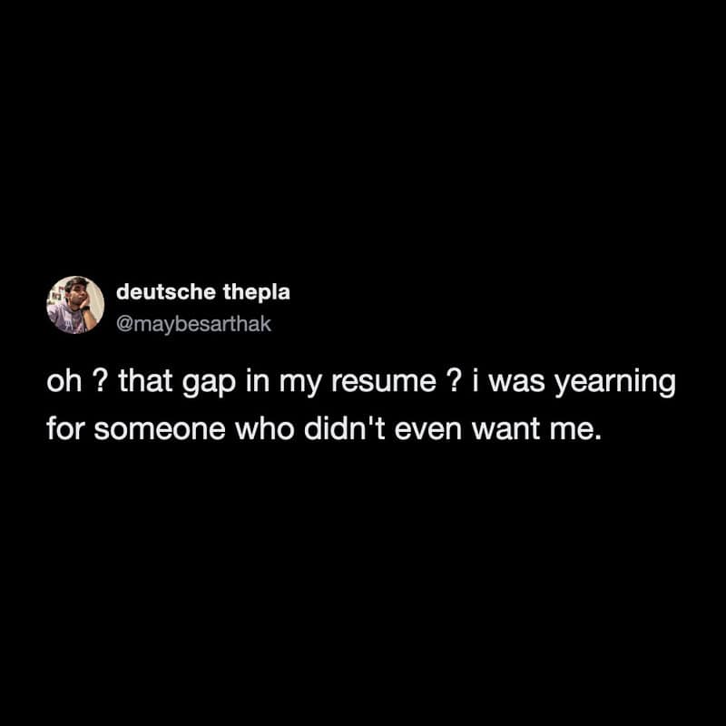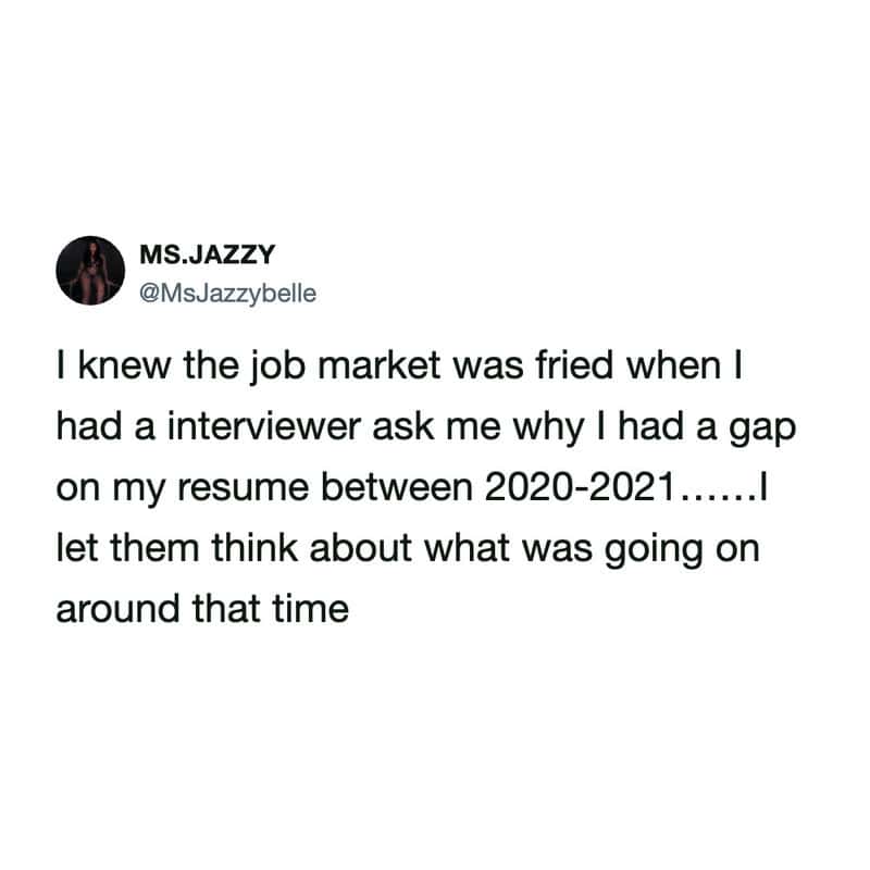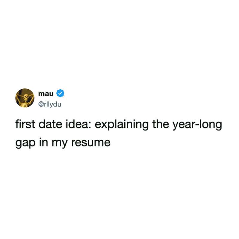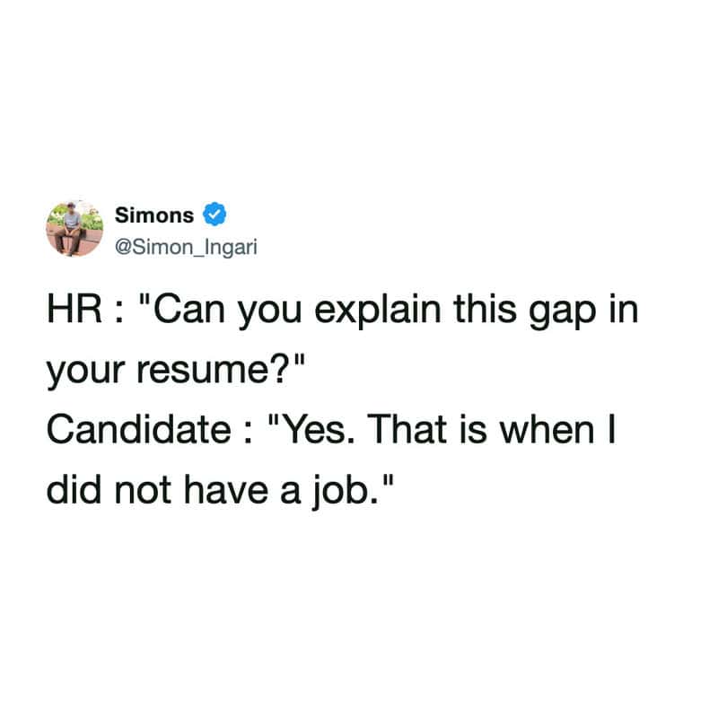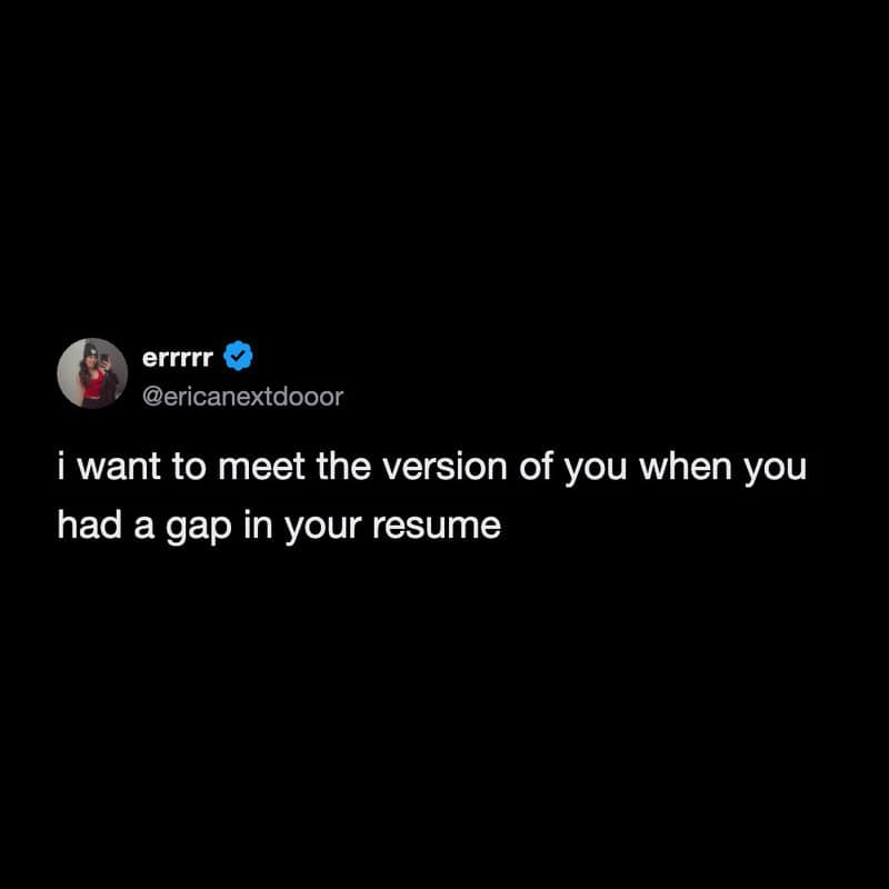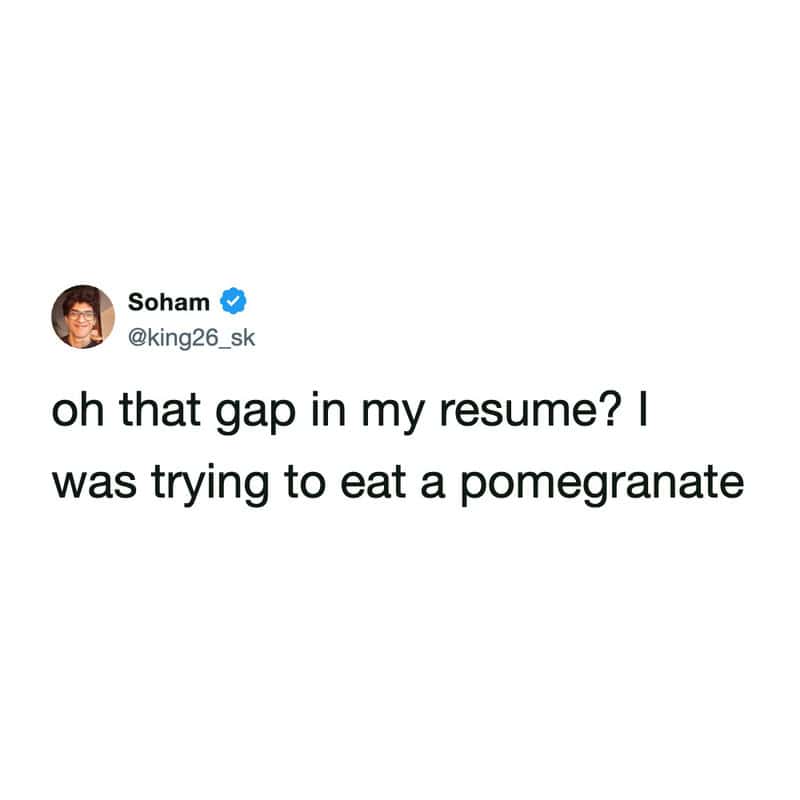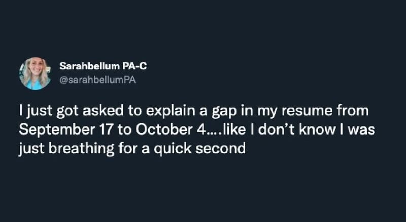 That’s clearly a time I wasn’t working. How bad could the reason really be? God forbid anyone takes a break in today’s world. These funny work tweets are for people with resume gaps who are tired of explaining themselves.