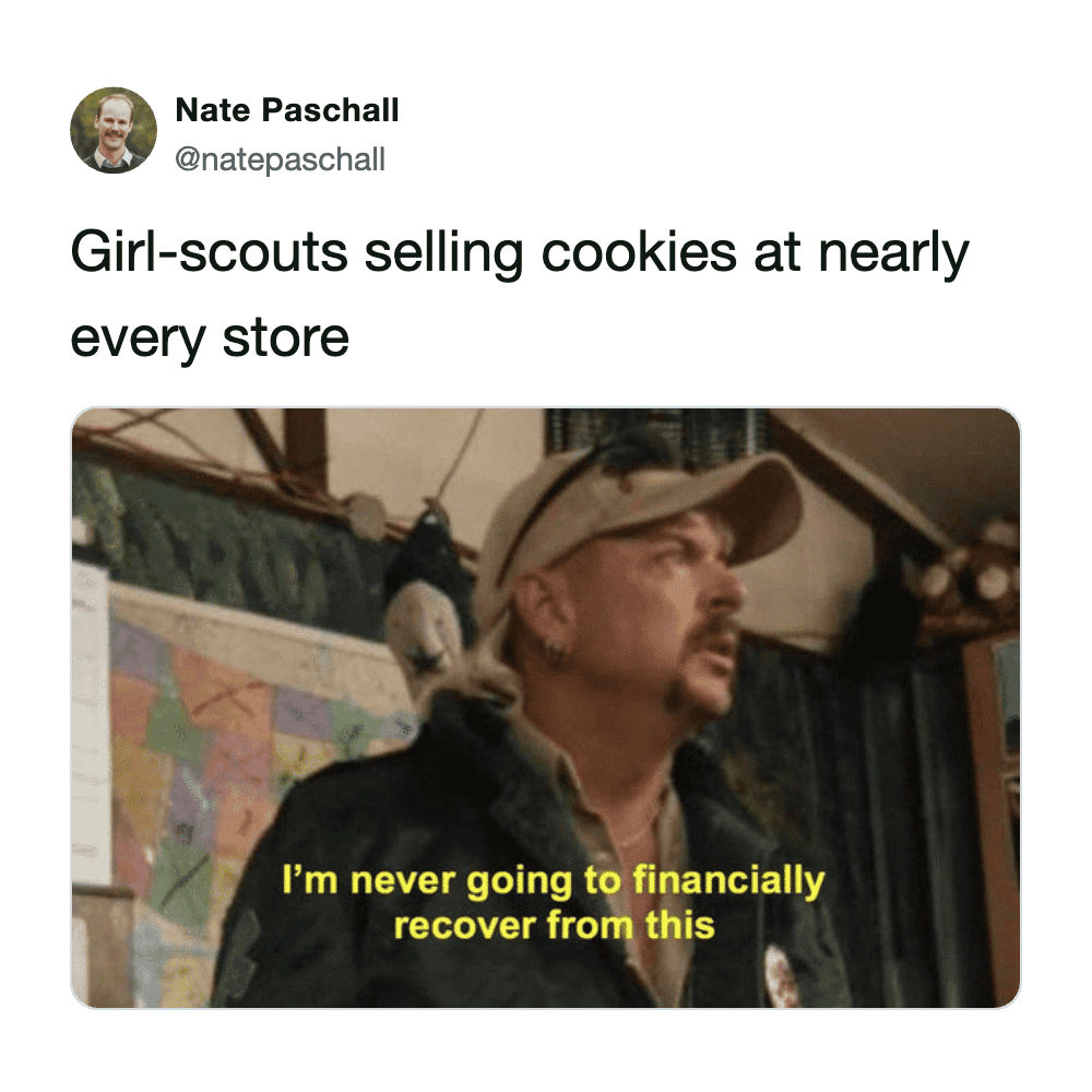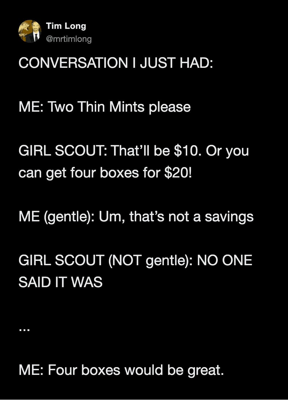 Girl Scout cookie season is one of those times of year when my self-control completely disappears. I go in planning to grab one box and somehow leave like I’m stocking a convenience store. At this point, I just accept it as part of the tradition.