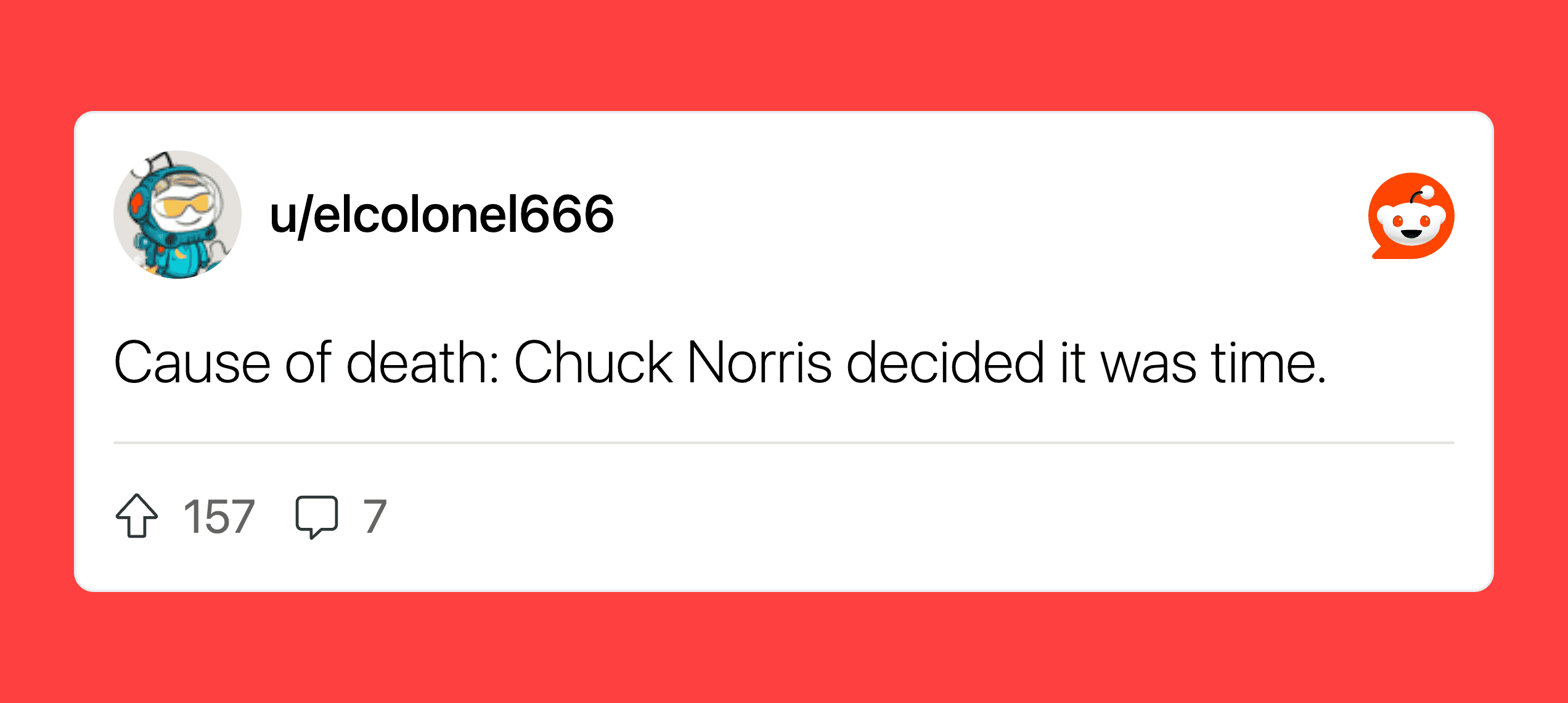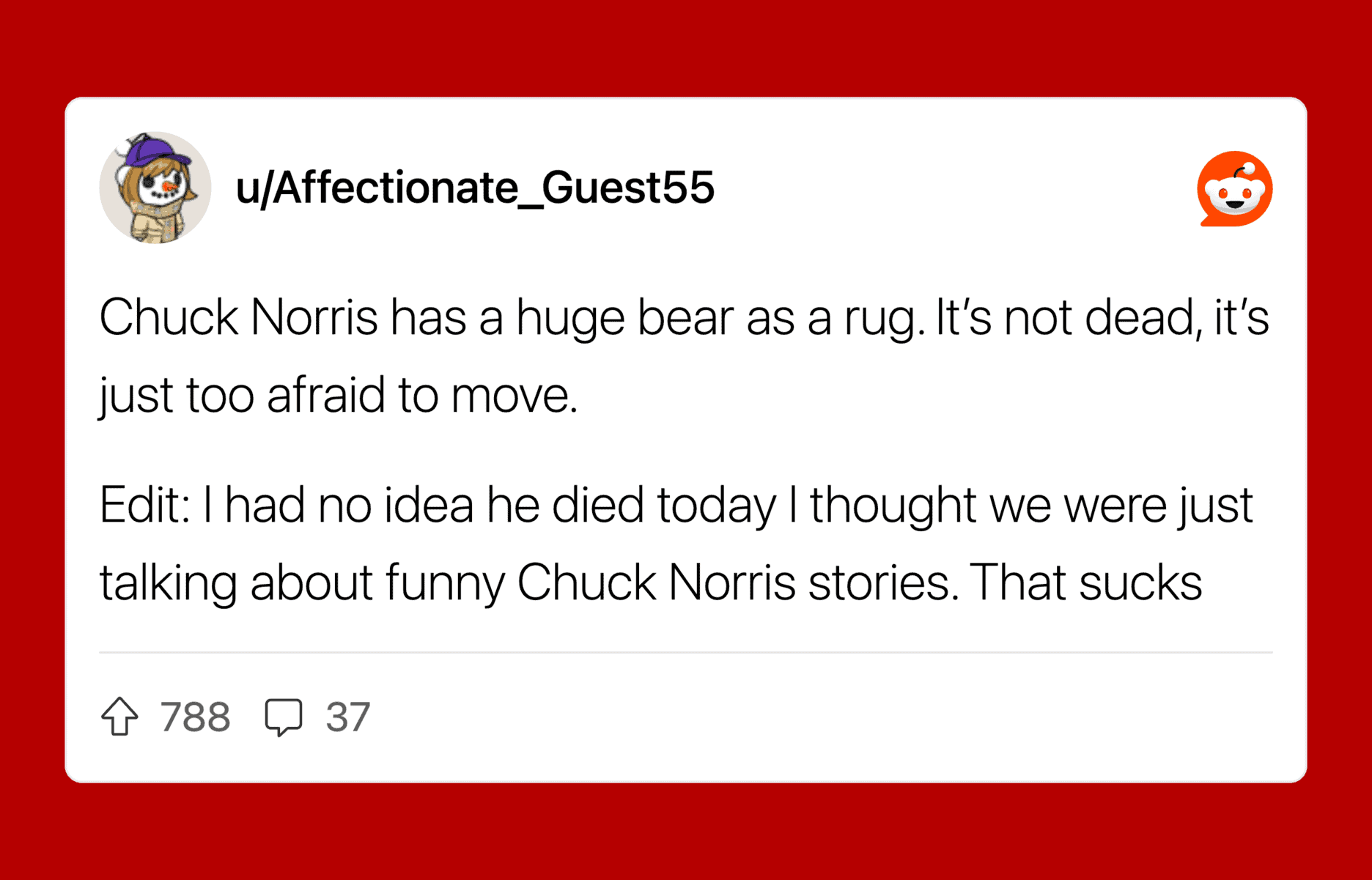 Chuck Norris jokes don’t age. They just wait. When the internet heard the news of his passing, someone asked everyone to share their all-time favorites, and it’s the most fitting tribute imaginable.