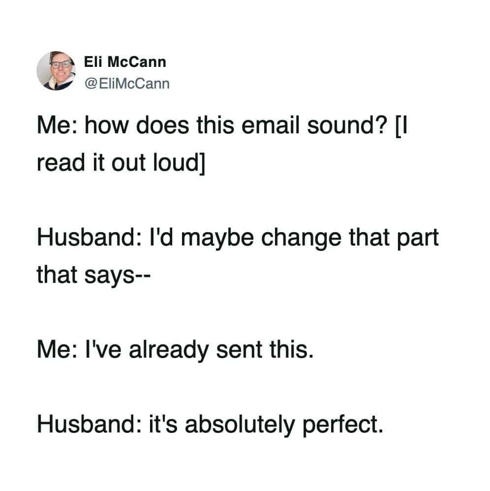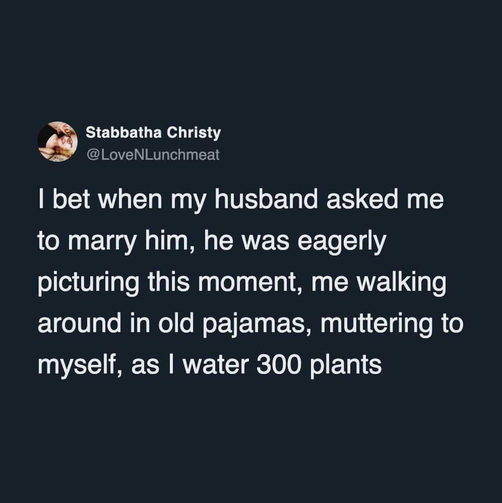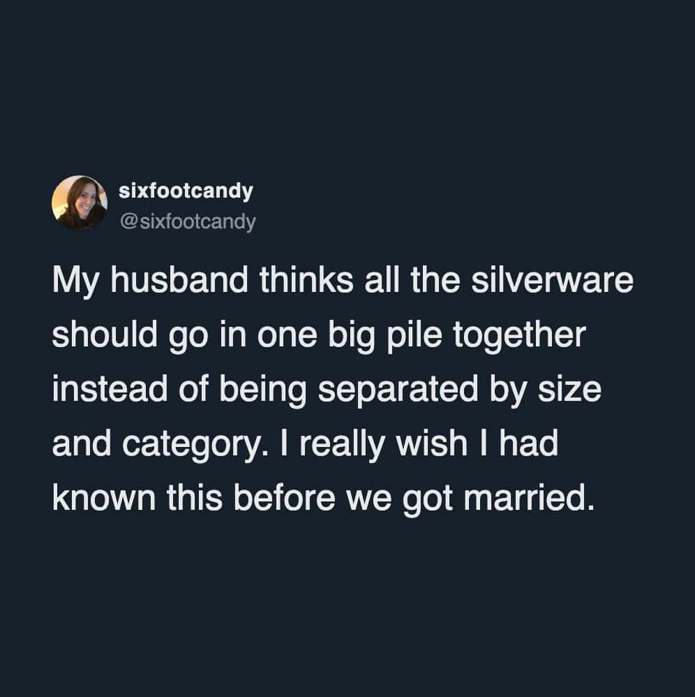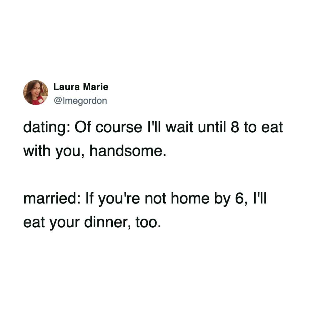 Marriage is 50% love, 50% wondering why your spouse does that thing with their mouth when they chew. This week’s funniest marriage tweets get it.