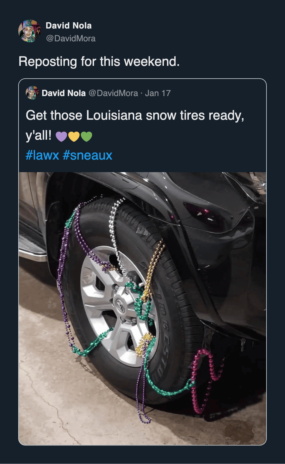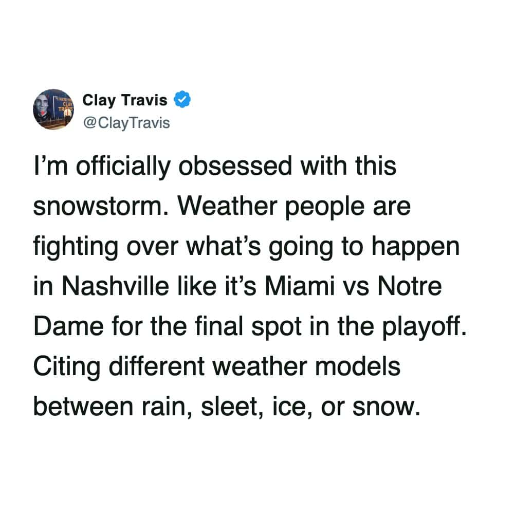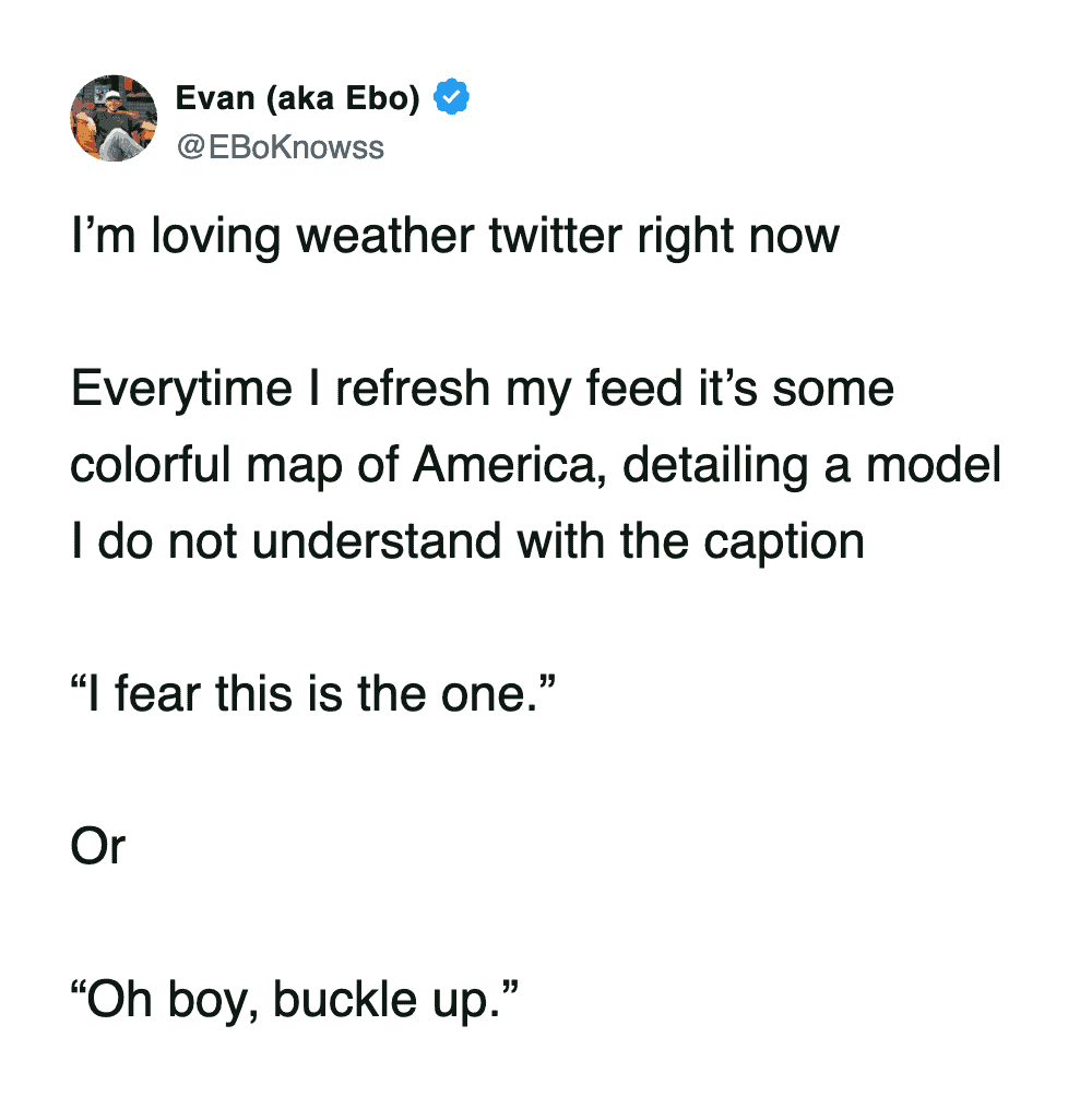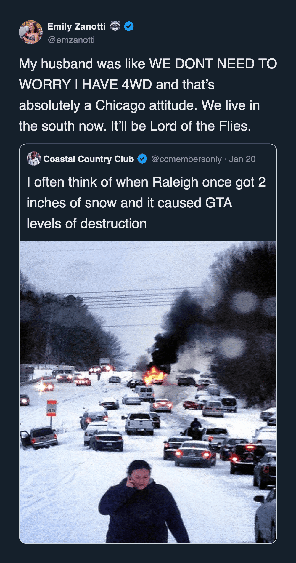 Weather Twitter is having a field day mocking this behavior as a massive icy winter storm approaches this weekend. Central Texas through the Northeast is preparing by emptying grocery store shelves and tweeting about it all.