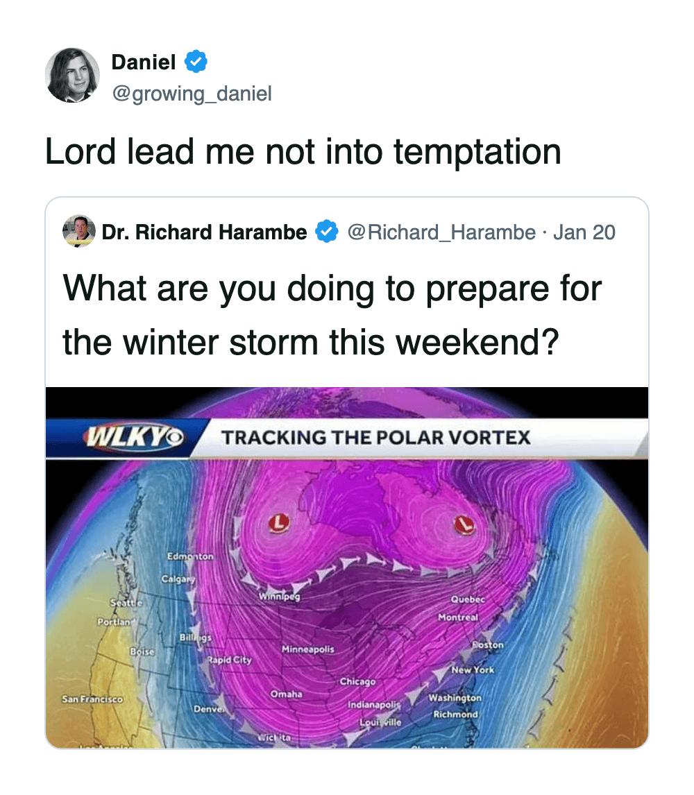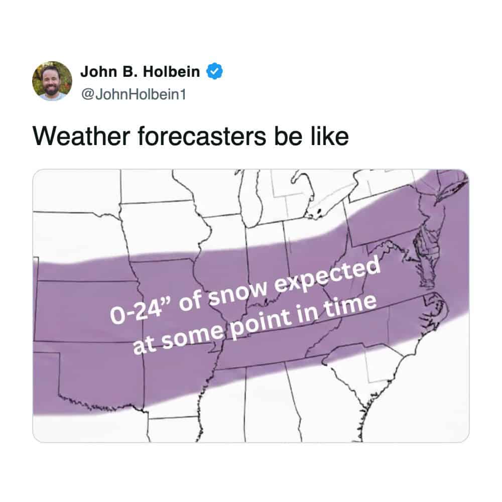 These funny tweets from people making fun of the weekend winter weather storm panic will make this weekend’s forecast nothing to worry about.