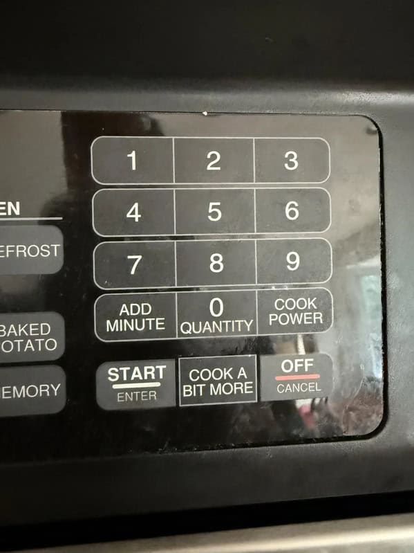 6. “This microwave has a ‘cook a bit more’ button to add a few seconds”