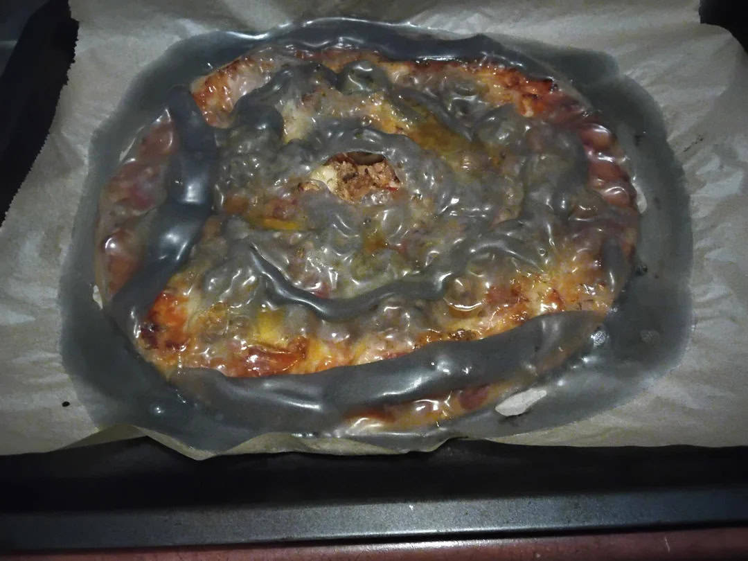 21. “I accidentally placed the microwave cover in the oven, so now I have plastic pizza”