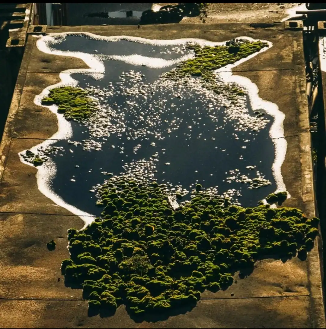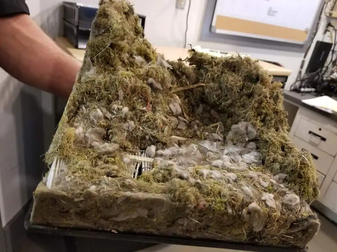 23. A car’s clogged air filter accidentally made a diorama of the Scottish Highlands on a foggy morning.