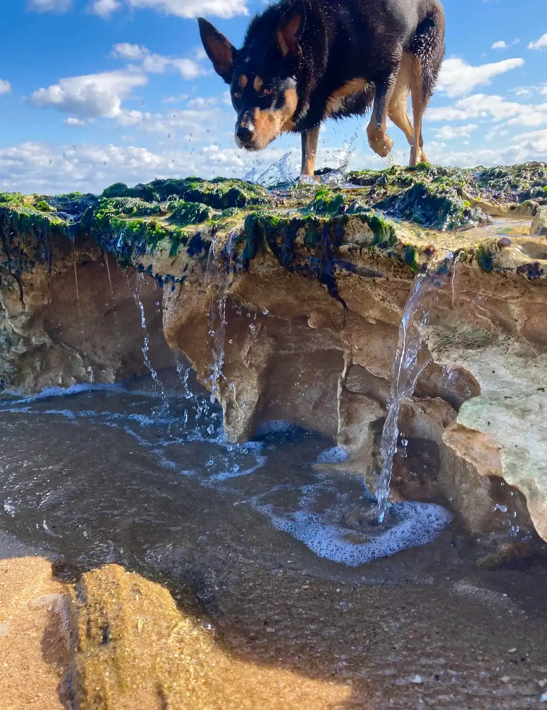 24. A giant dog over a vast and rugged cliff face