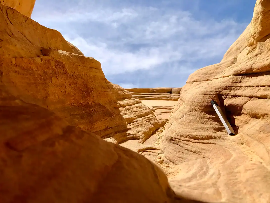 27. Found a tiny canyon while hiking in the Valley of Fire. Juul for scale
