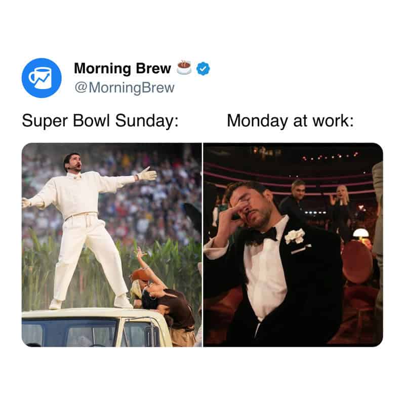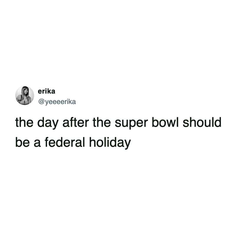 There’s a push every year to make the Monday after the Super Bowl a national holiday, and every year it doesn’t happen, so here we are at work, suffering. An estimated 26.2 million people say they planned to call in sick today, the day after the Super Bowl, and the rest show up hungover, pretending they’re fine. It’s tradition at this point.