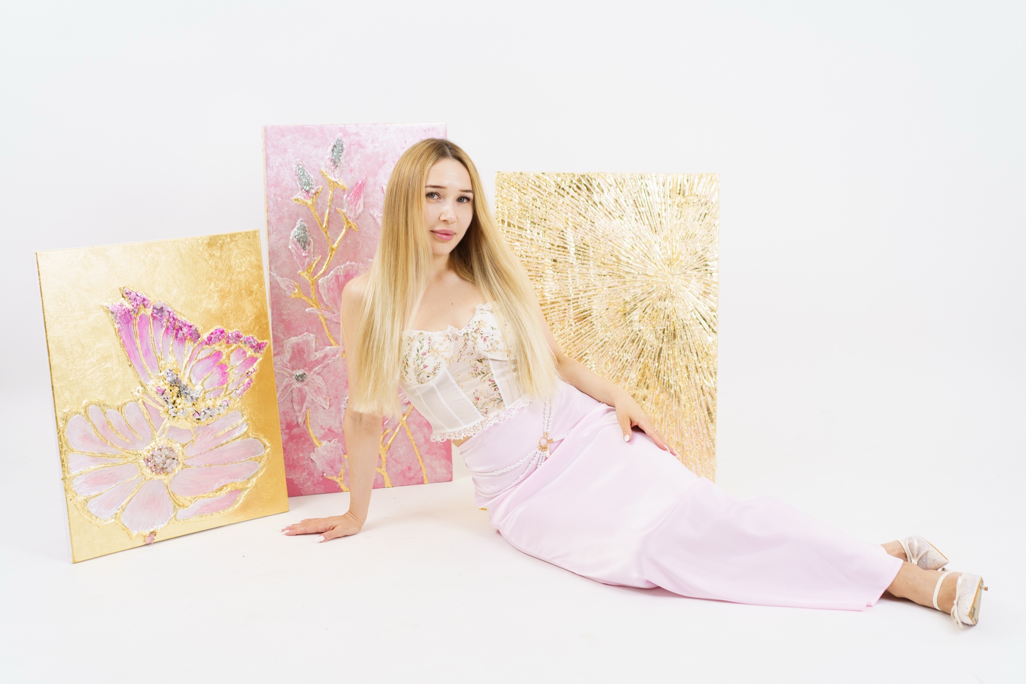 The title reflects the duality that defines her creative language. “Blush” represents the softness of femininity, emotional depth and the quiet poetry of vulnerability while “brilliance” is the radiant glow of gold, resilience and the luminous power of spiritual illumination. The timing is intentional — December is a month of reflection, warmth and renewal. Adelia’s art mirrors this energy, offering visitors a space to reconnect with beauty, light and inner radiance amidst the festive atmosphere. “Blush & Brilliance is about returning to beauty,” Shakurova shares. “Not surface beauty, but soul beauty — the kind that glows from within, even in the quietest moments.”