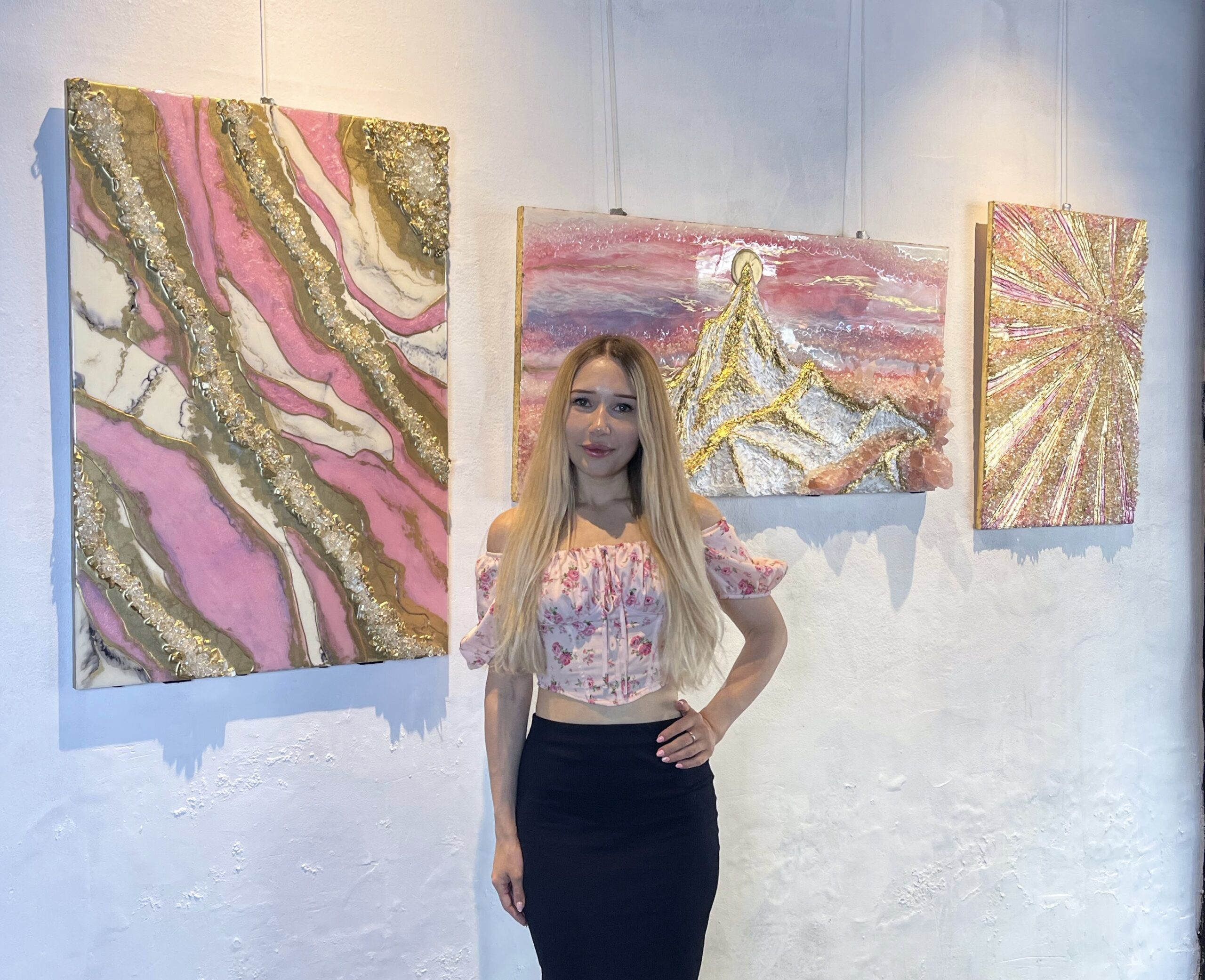 Set within Starhill’s iconic luxury environment, the exhibition transforms the space into an ethereal world. Throughout the exhibition, guests will experience Adelia’s signature gold-infused dreamscapes, flowing resin textures and layered compositions, enhanced with white quartz, tempered glass, metallic accents and rose-toned illumination. Each piece channels energy — soft yet powerful, refined yet deeply intuitive.