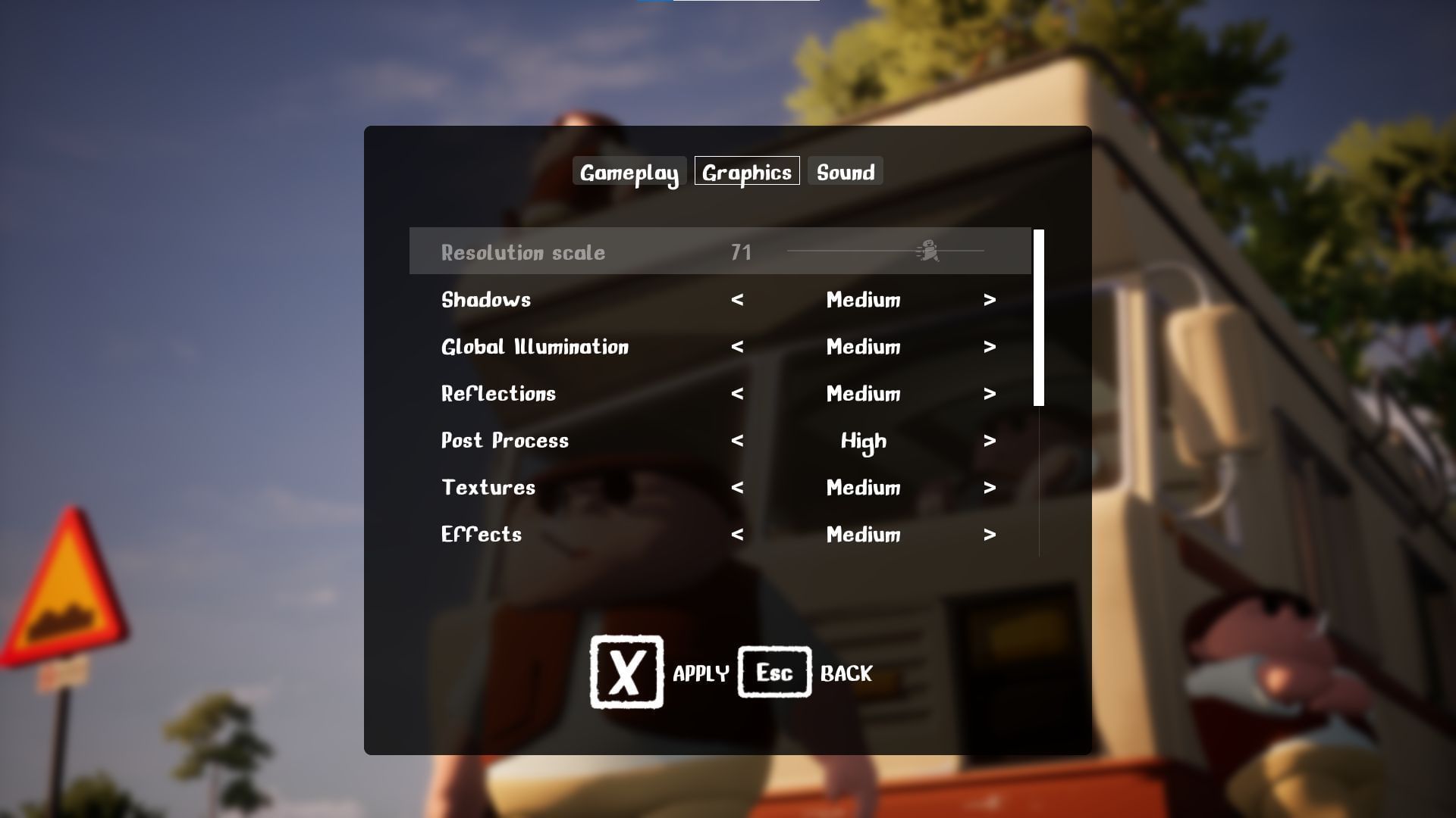 Best graphics settings for mid-range systems (Image via Nuggets Entertainment)The best graphics settings for RV There Yet can be tweaked according to personal preference. You will find a limited number of visual parameters to tweak within the settings; after all, the game has a nonrealistic appearance. However, the following adjustments will reduce the stutter and provide the optimal performance for mid-end systems without compromising the visuals: