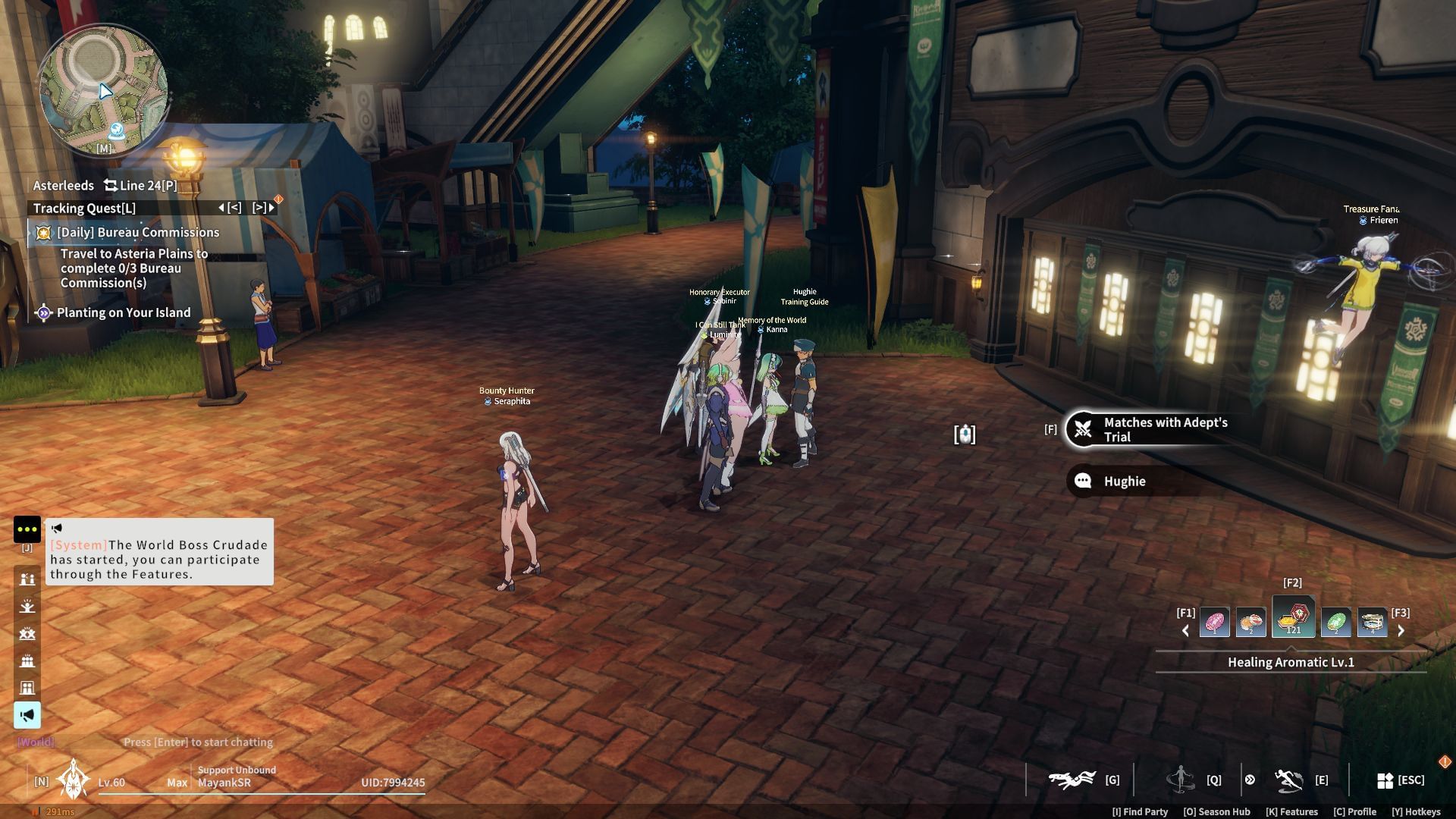 Talk to Hughie to start Adept's Trial in Blue Protocol (Image via A Plus)The Adept's Trial is a limited-time event available in the Arena Town area of Asterleeds. Outside the halls, you’ll find the Training Guide, Hughie, who’ll help you match with other players for the event. If you don’t want to play with randoms, go with a premade team before talking to Hughie.