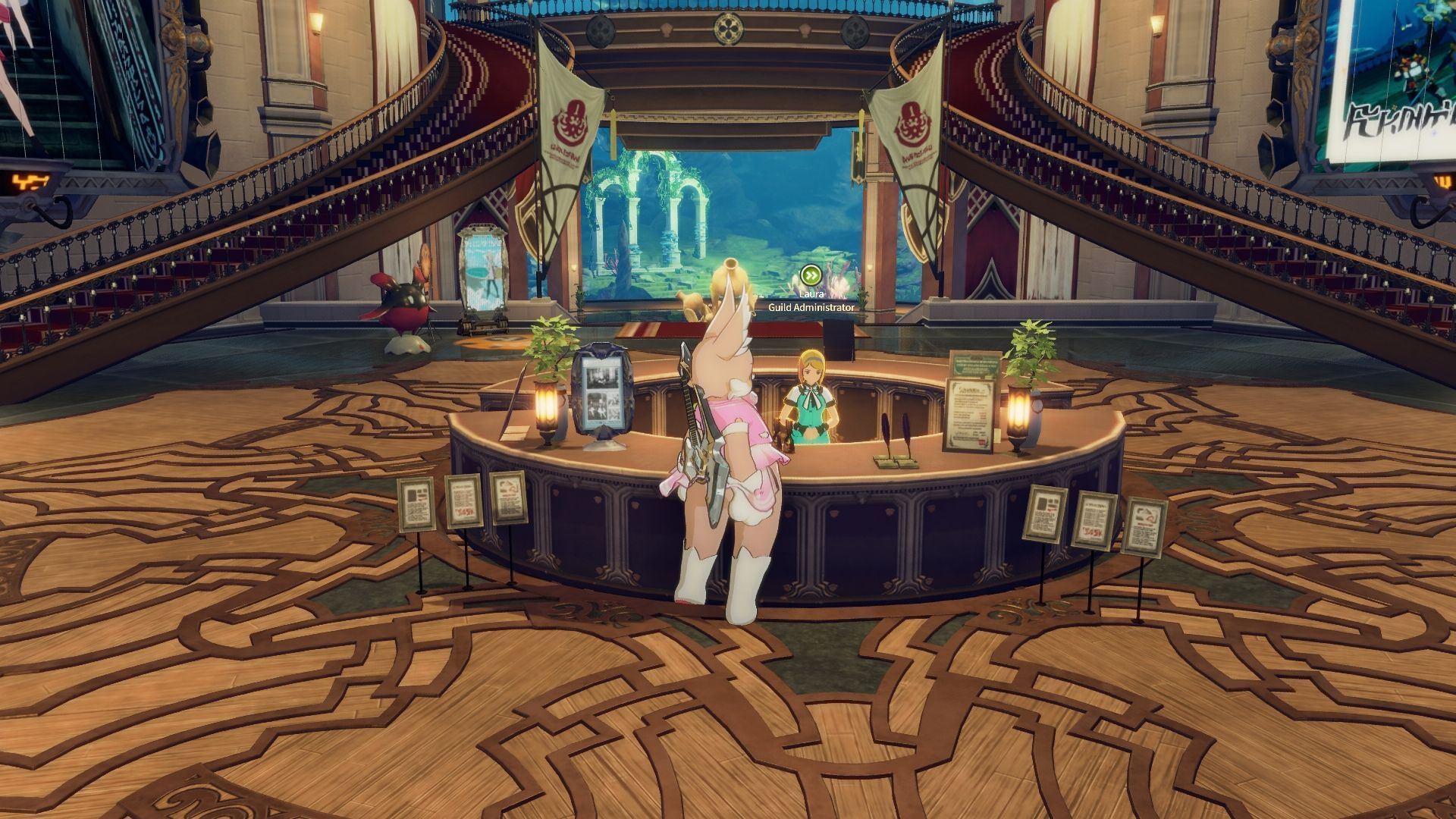 Talk to Laura for a daily guild check-in in Blue Protocol (Image via A Plus)If you’re submitting goods to Cargo every day, it's also a good idea to complete the daily check-in at the reception. The rewards aren’t the best, but they help accumulate progress towards the weekly activity.