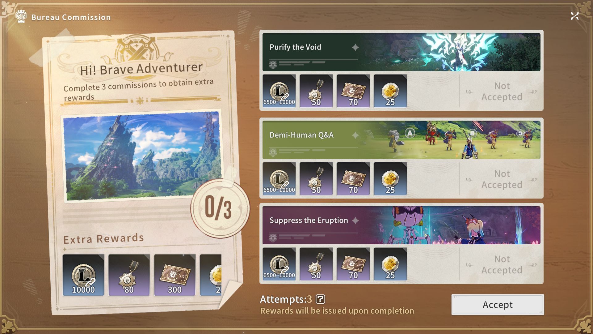 Commissions are a good way to earn Luno (Image via A Plus)The Bureau Commissions are a set of three activities that reward various in-game currencies. Completing all three grants you bonus currencies like Luno and Asteria Reputation, which you can use to upgrade skills and redeem rewards from the shop.