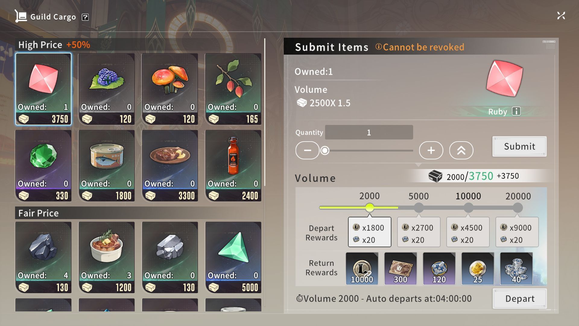 Submit goods in Cargo for rewards each day (Image via A Plus)The Guild Cargo helps you get some Luno and Guild Tokens in exchange for some goods you farm. Once you submit enough to reach the minimum volume (2000), the trader will depart and return with rewards the next day.