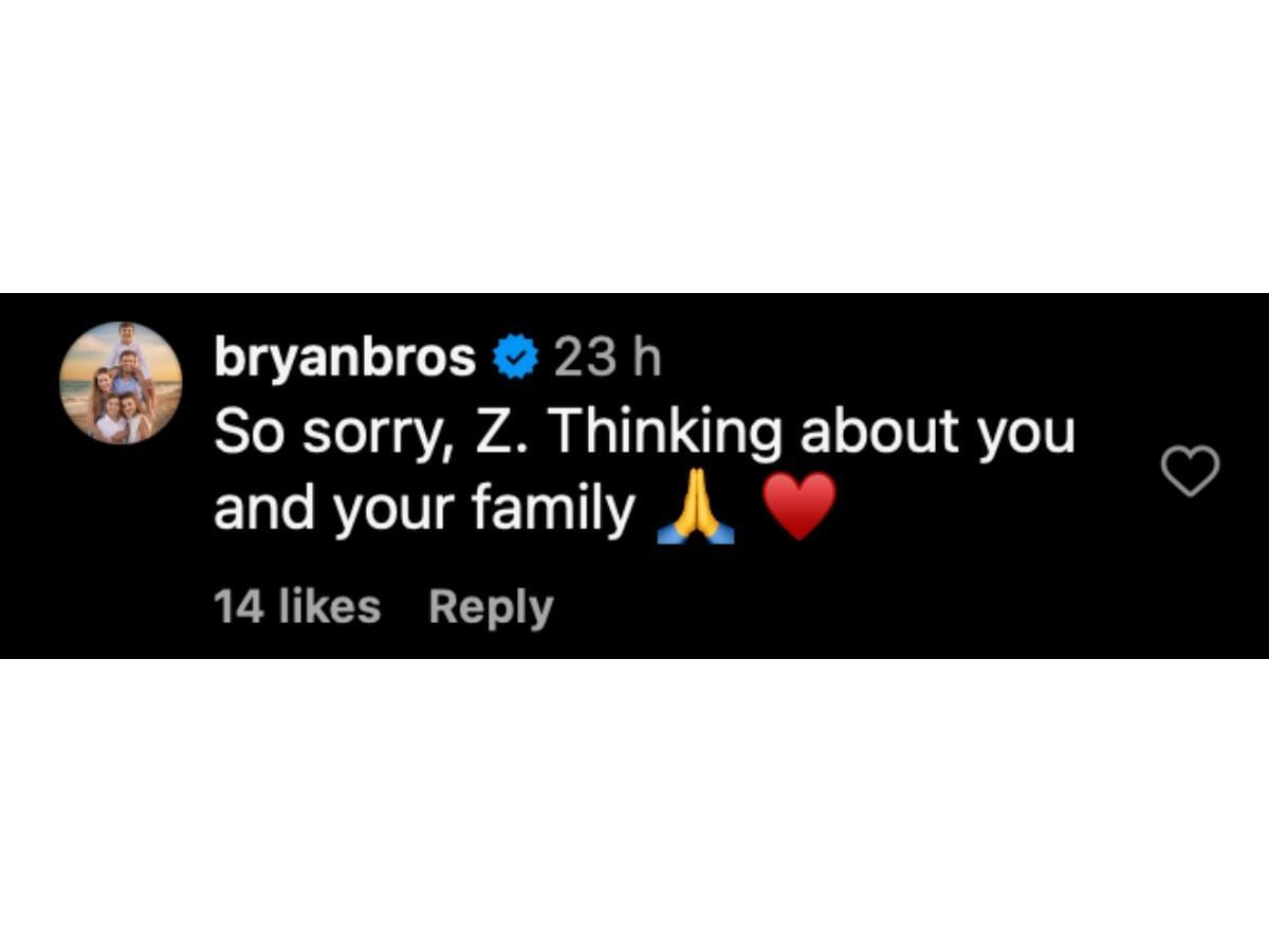 "So sorry, Z. Thinking about you and your family🙏🏻❤️"