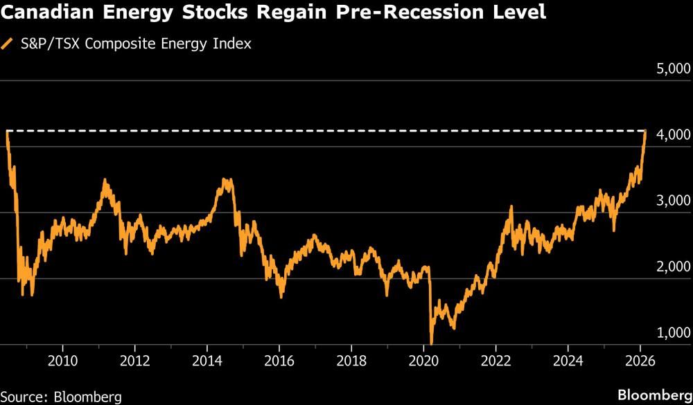 Oil surged this week as traders weighed whether U.S.-Iran talks will be enough to head off conflict after a report suggested U.S. military intervention could come sooner than expected. The S&P/TSX Composite Energy Index rose as much as two per cent on Thursday; if it holds, the group would finish at an all-time high for the first time since June 2008. The index is up 19 per cent this year, versus a 5.5 per cent advance for the S&P/TSX Composite Index.