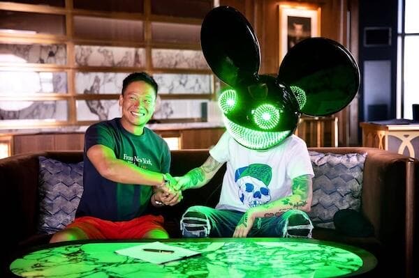 A younger Andrew Li either shaking Deadmau5 after inking a deal or posing for a photograph.What’s a distinct memory of clubbing that is not in Zouk?
