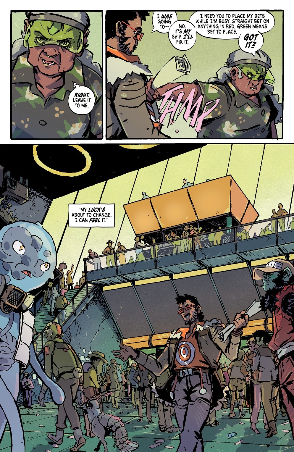 On its crew’s mission to deliver kaiju eggs to a mysterious buyer, Starship Godzilla crashes! Stuck on a strange gambling planet, they must either win big or steal the parts they need to get flying again. The situation gets even dicier when the crew discovers that hitting the jackpot on this world involves provoking King Ghidorah into an attack!