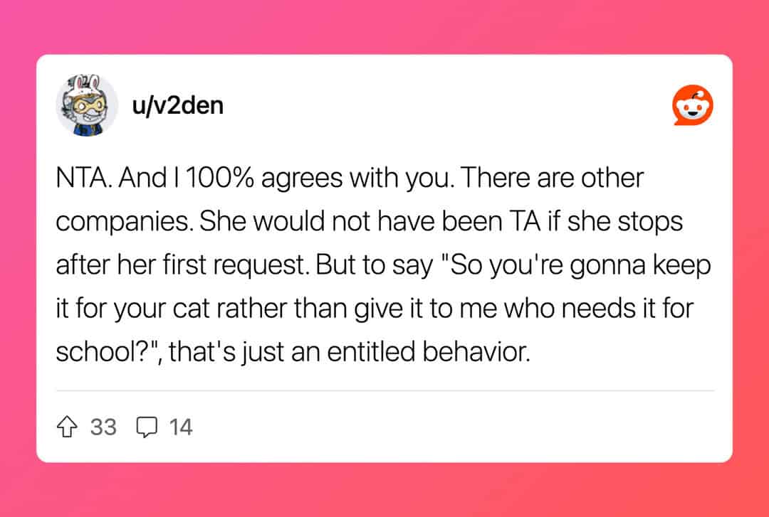 13. Many commenters felt his sister’s reaction came off as entitled.