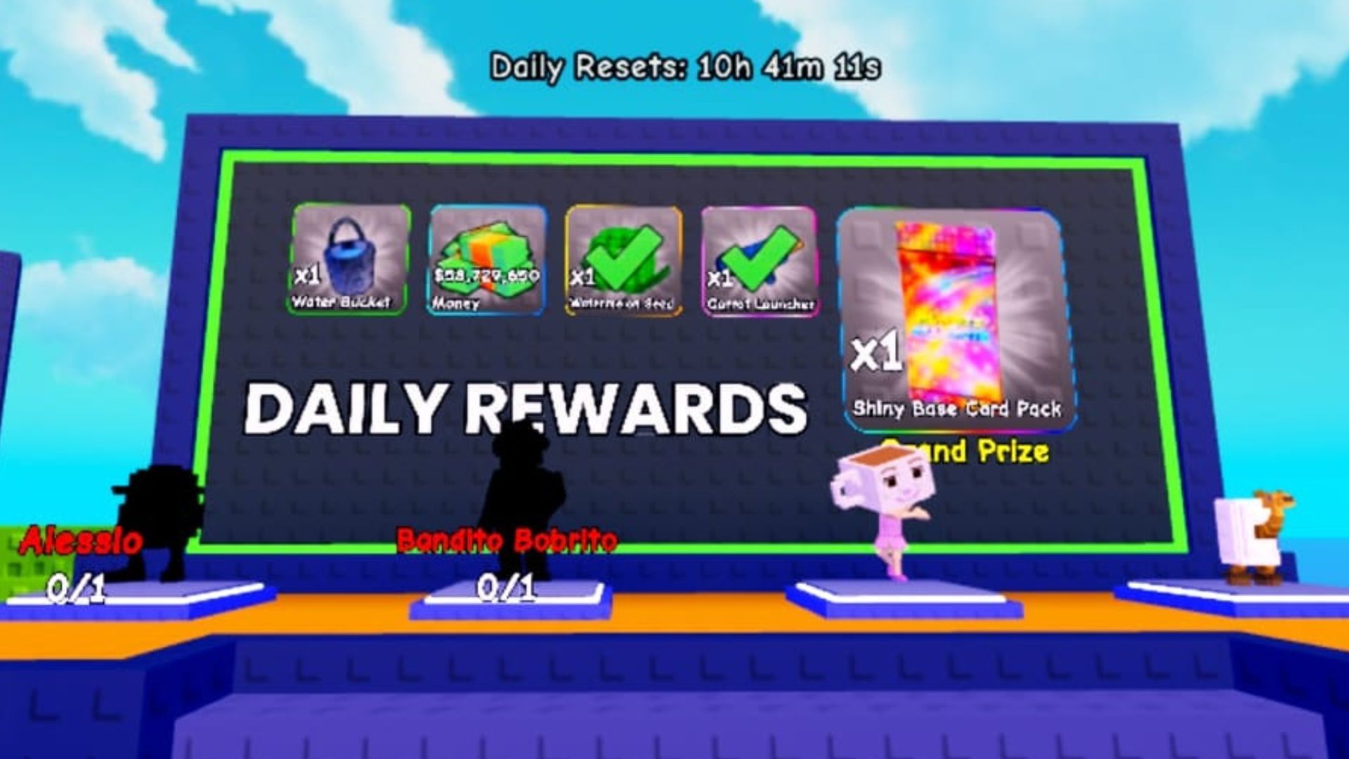 Daily Rewards offer a consistent source of income in Plants Vs Brainrots. Simply place the required Brainrot on the platform and collect the rewards, which include cash, gears, and seeds. It is possible to get more than 50,000,000 by completing a daily task.