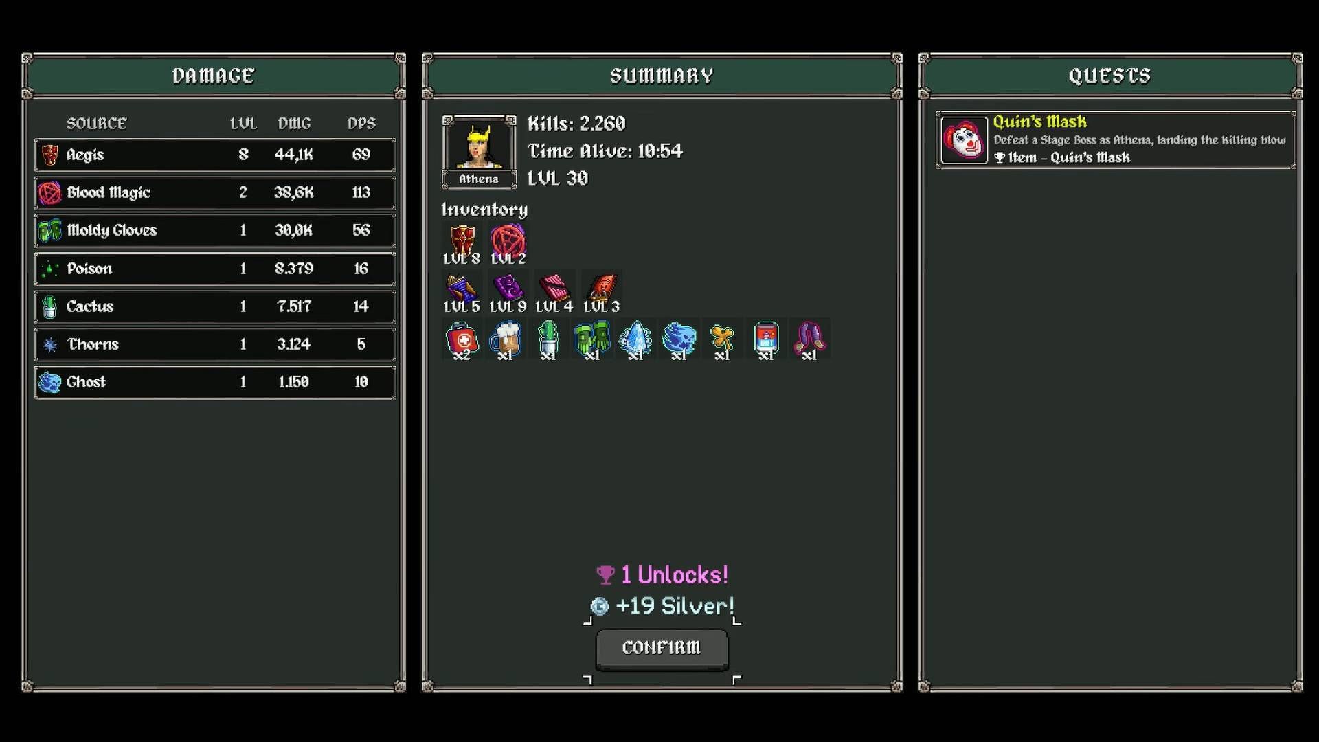 To unlock the Quin’s Mask, you must defeat a Stage Boss as Athena while using the weapon Aegis. Make sure you land the final shot with it to count. Once you defeat the boss, it will appear in your item list that you can use for later stages of the game. You can choose either maps (Forest or Desert) to complete the challenge and unlock the rare item.