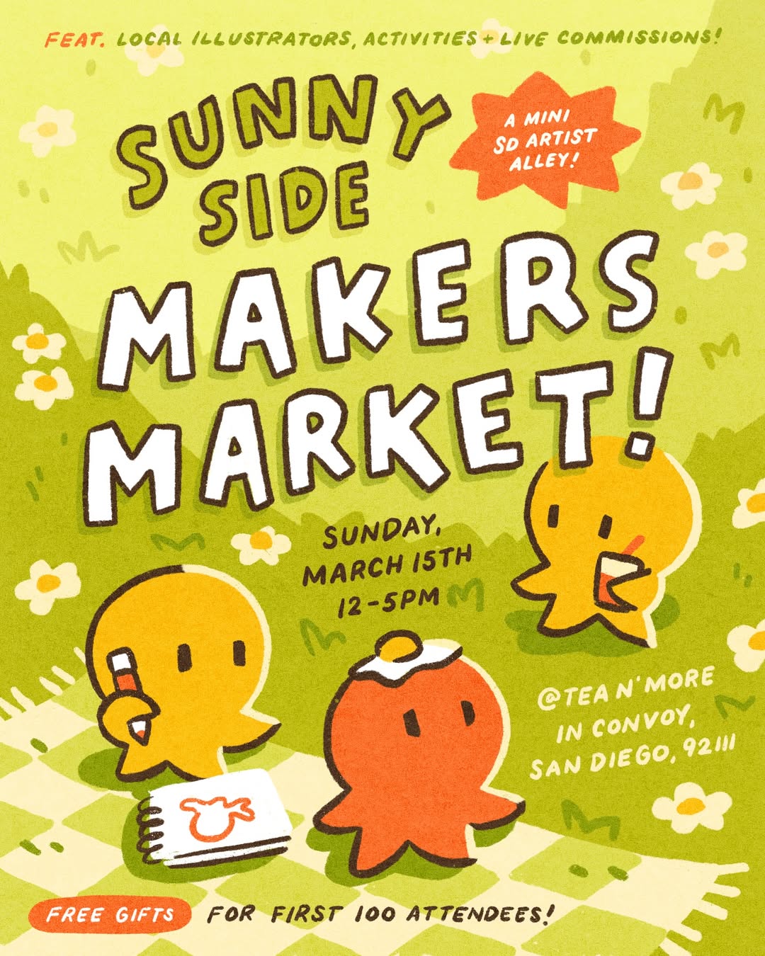 DIEGO HIGUERA: I wanted to ask what made you feel San Diego needed more accessible and curated artist alleys for illustrators and makers like Sunny Side Makers?