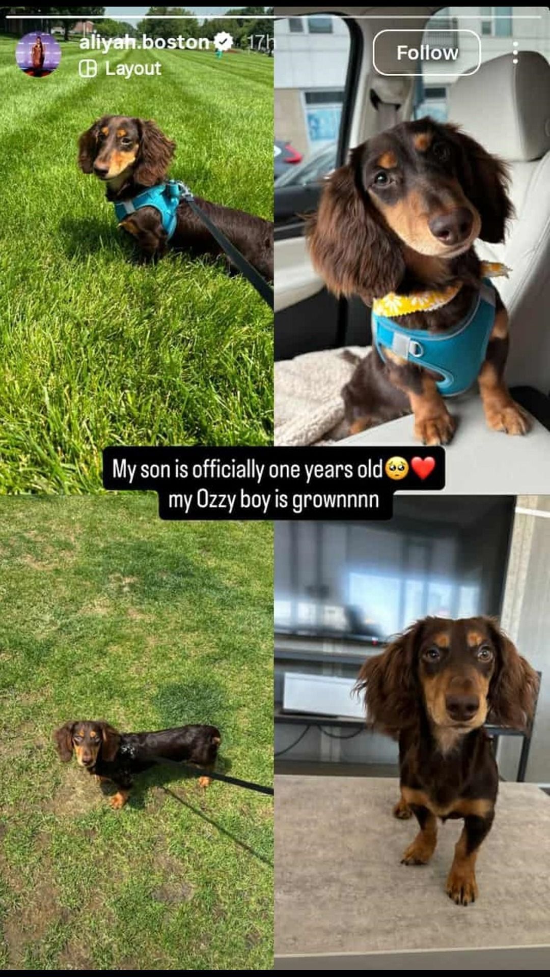 On Saturday, Boston went on Instagram to announce to the world that her puppy Ozzy had turned year old. The proud fur parent that she is, Boston posted four pictures of the dachshund in her Instagram story.