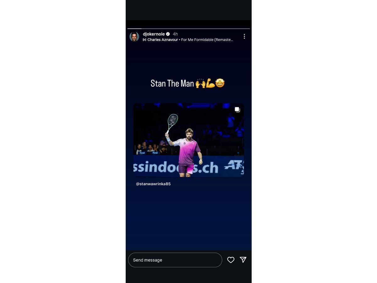 This message caught the attention of Djokovic, who reshared this post on his Instagram story and saluted Wawrinka with a three-word note that read: