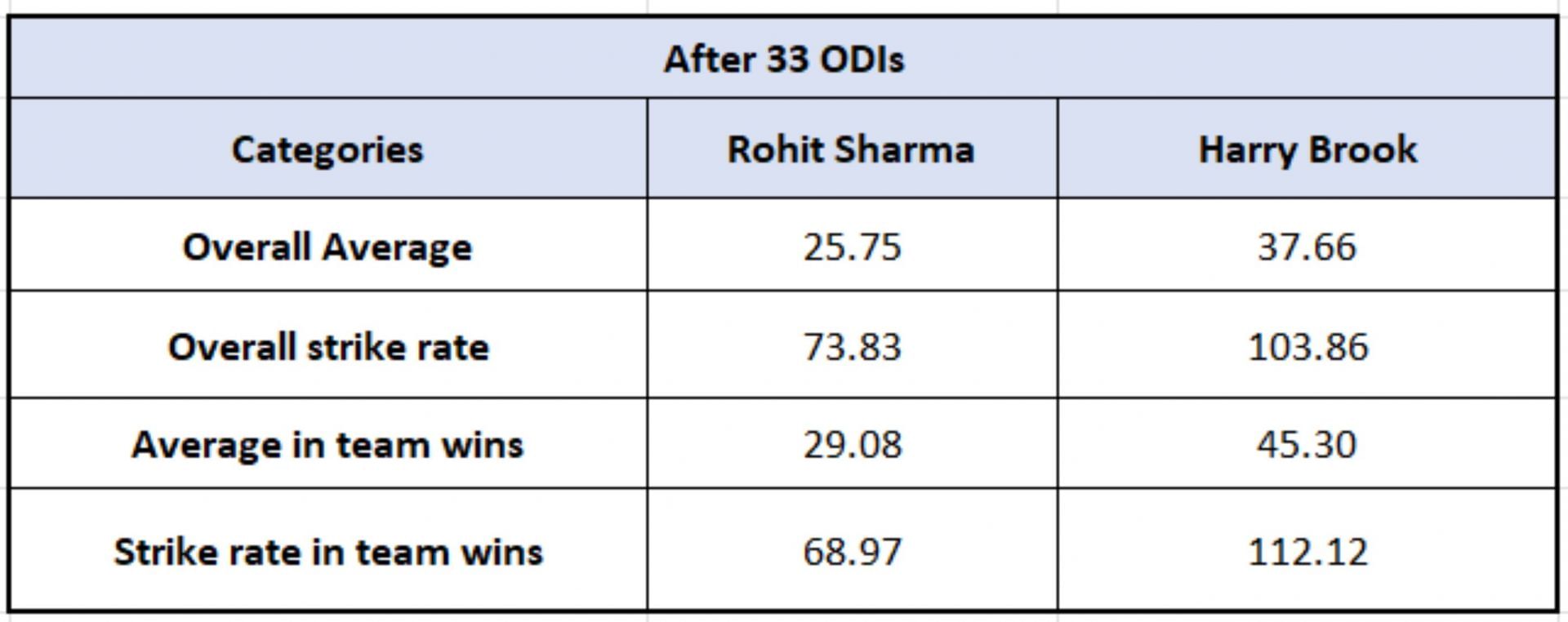 Whether Harry Brook can go on to achieve the incredible feats Rohit Sharma has in ODI cricket remains to be seen. Yet, the former can take heart from the fact that he is more than on track, given his far superior numbers across all categories after their respective first 33 ODIs.