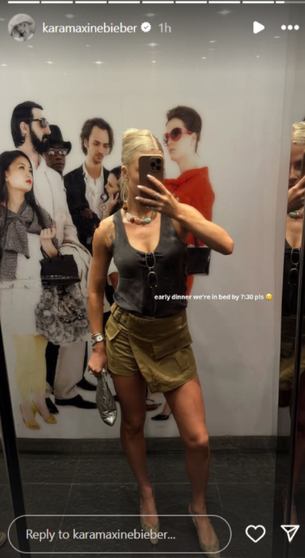 "Early dinner. We're in bed by 7:30 pls."Kara shared a picture of the Hideaway, a Mexican steakhouse located in Beverly Hills.