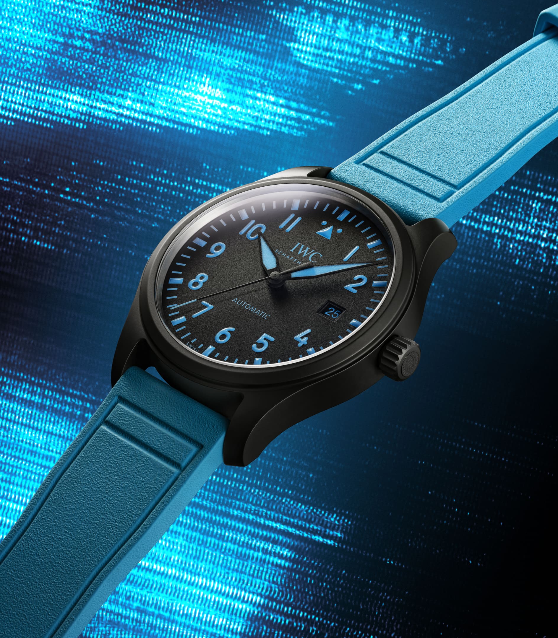 IWC Schaffhausen continues to push the boundaries of high-performance materials with the Pilot’s Watch Automatic 41 George Russell, created in close collaboration with the Mercedes-AMG PETRONAS Formula One™ driver. The watch features a 41 mm black zirconium oxide ceramic case paired with a Ceratanium® crown, combining the lightness and scratch resistance of titanium with the hardness and durability of ceramic.