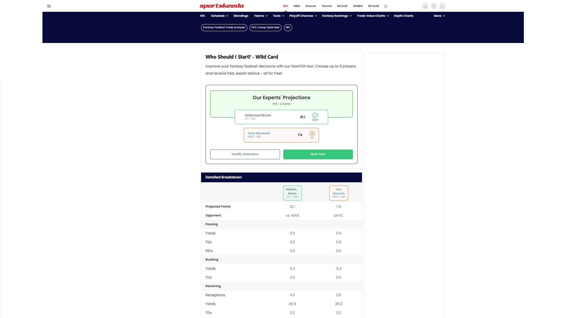 Brown vs McLaurin - Sportskeeda's Who Should I Start ToolAccording to Sportskeeda's Who Should I Start Tool, there's a clear winner between Hollywood Brown and Terry McLaurin. This isn't always the case, but this time there's a right and a wrong choice between the two.