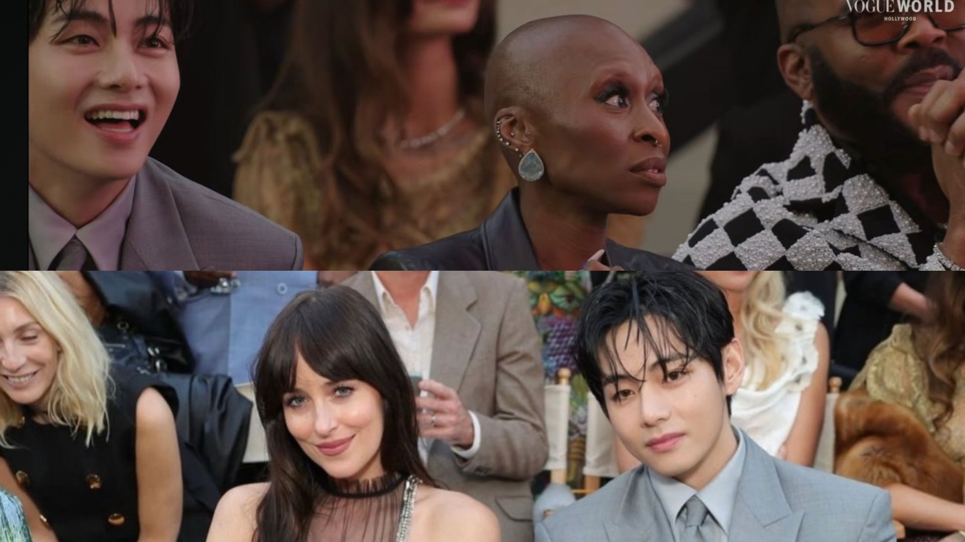 During the evening, V was seen engaging with international stars. He sat beside Dakota Johnson and Cynthia Erivo. He was also seen clapping for the models and performers before, during, and after they walked the runway.