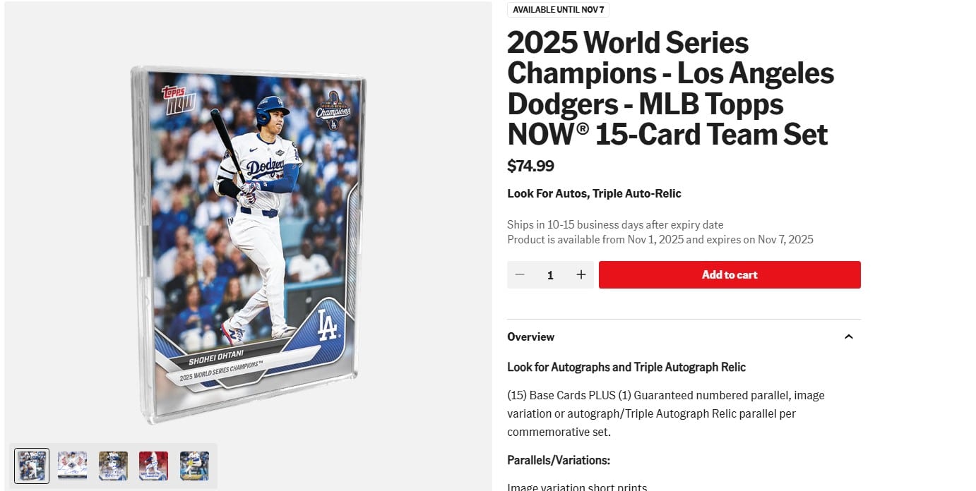 Even now, the only way to buy a Topps Now Los Angeles Dodgers 2025 Champions card is in a group of 15 cards. There is a guaranteed card per pack but I don’t need 15 cards of the same card. Collectors usually buy multiple packs in the hope of getting a rare card, so that it could be 30+ copies of the same card. These are scratch-off ticket numbers. That’s excessive and an odd business practice, regardless of how big an event the World Series was.