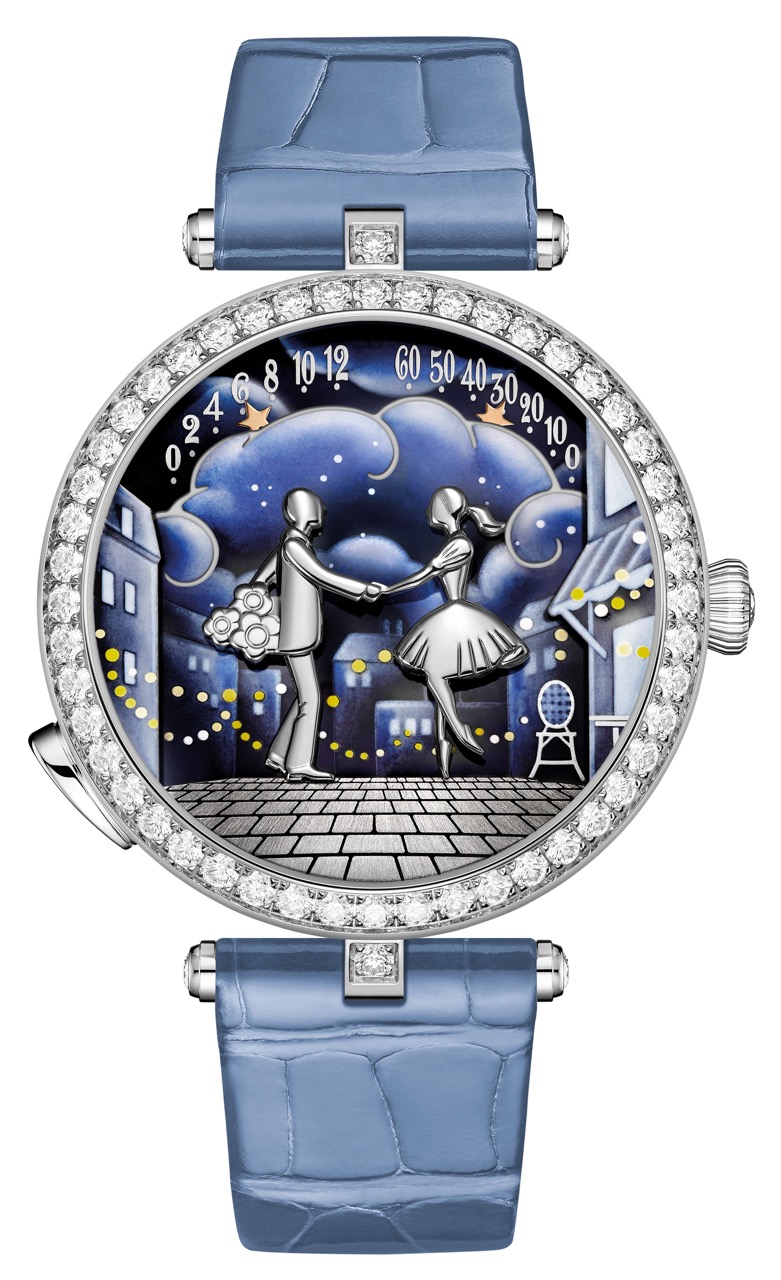 Looking at the watch, the story here must be the kiss, not the time, although Van Cleef & Arpels would subsequently allow the couple to meet more than twice in successive creations, including this year’s Lady Arpels Bal des Amoureux.
