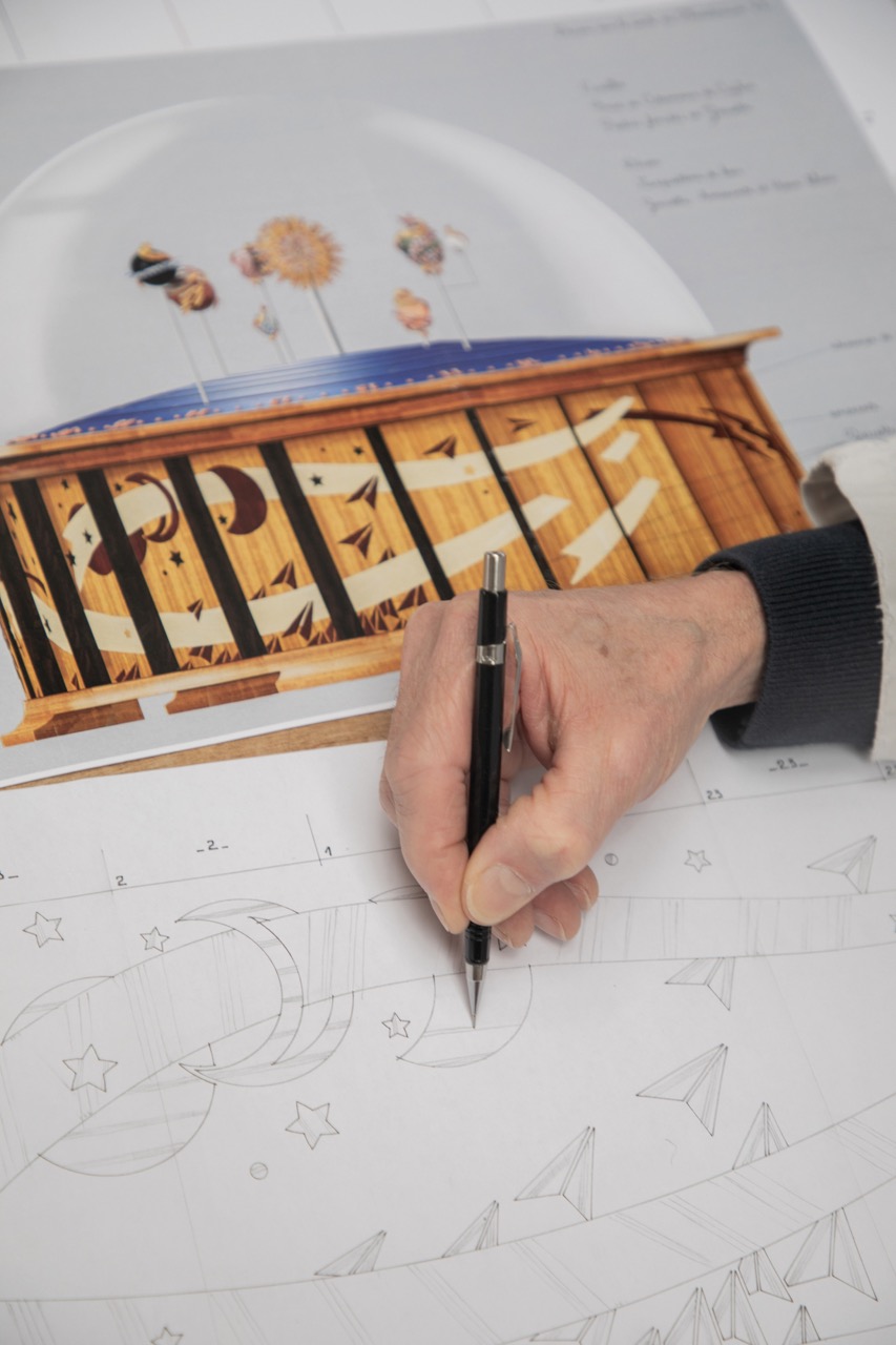 Only then does the technical “nightmare,” as Narbeburu fondly calls it, begin. The design studio first translates the story into watercolour illustrations. These are then handed to the watchmaking team, who are tasked with a formidable challenge: inventing the mechanics to bring the story to life.