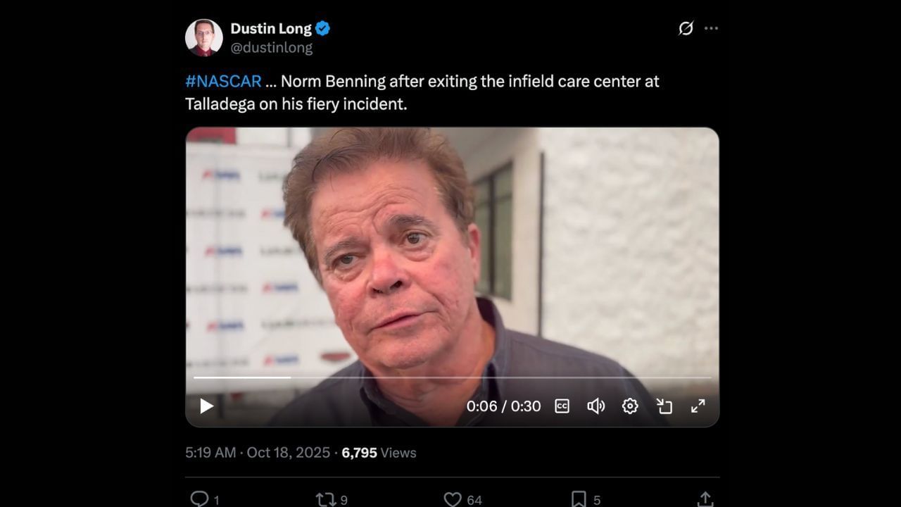 Norm Benning spoke to NASCAR reporter Dustin Long and went over the engine blowout.