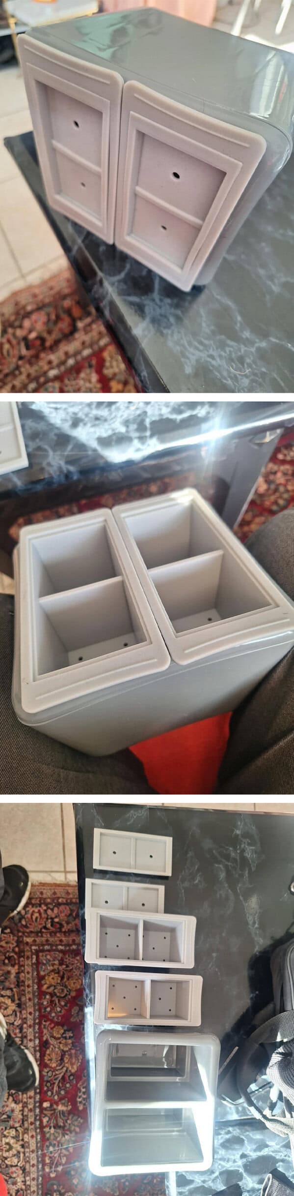16. “Hard plastic box with two soft silicone inserts with silicone lids, a few holes throughout. The inserts can be removed and there’s a small space beneath them. BC, Canada”