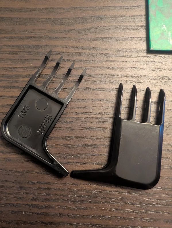 “Found in my brother’s utensil drawer. Looked like they might be for some hair or beard trimmer, but they don’t seem like they can clip onto anything. Sunglasses for scale.”