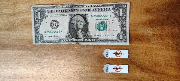 Didn’t have any change, would have preferred to use a quarter for comparison but only had paper bills thus second image shows them next to a dollar bill for size comparison