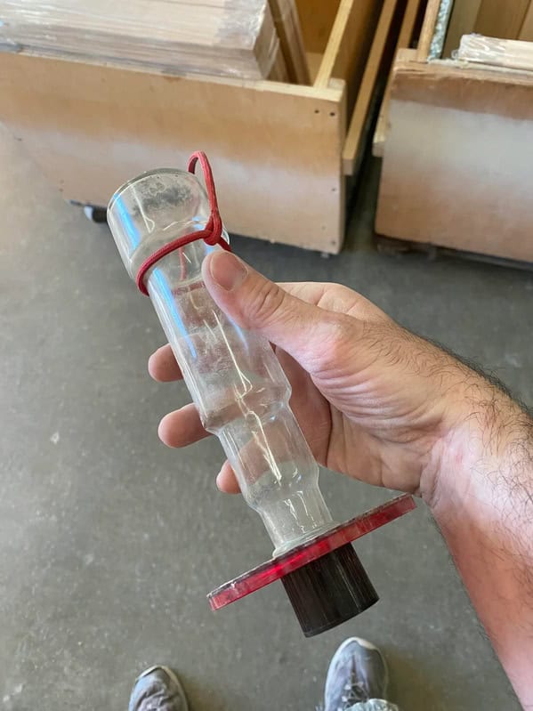 14. “Husband found this Glass tube thing at work. Might say Ball on one side looks to fit on top of a mason jar about 8 inches long.”