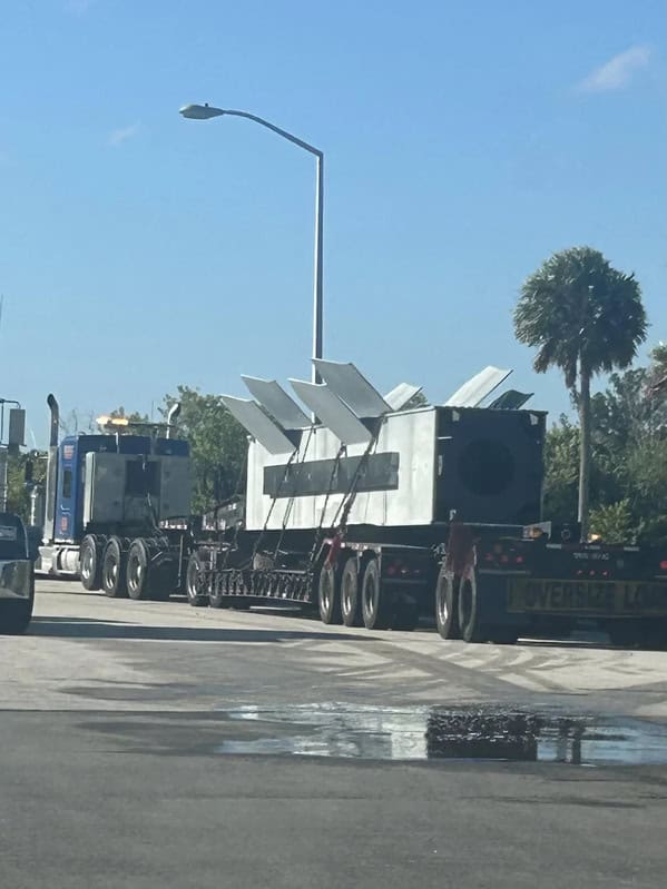 “I tried to get a better photo but couldn’t in time. It had a “Wide Load” convoy and pulled into Lockheed Martin, Titusville, Florida:”